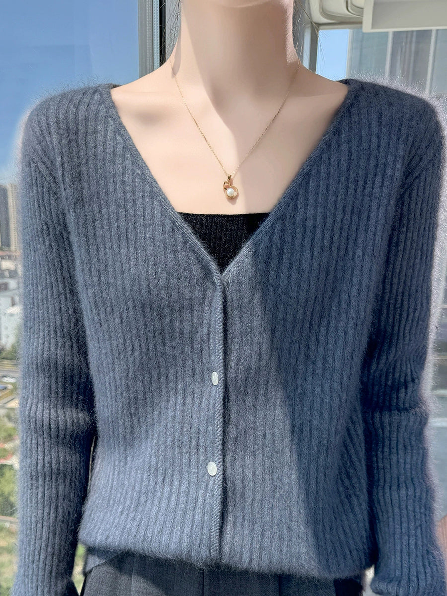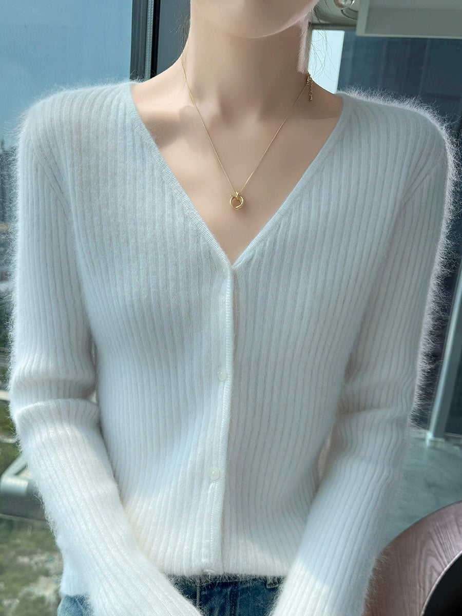 Maglione casual primaverile da donna con scollo a V, colore puro