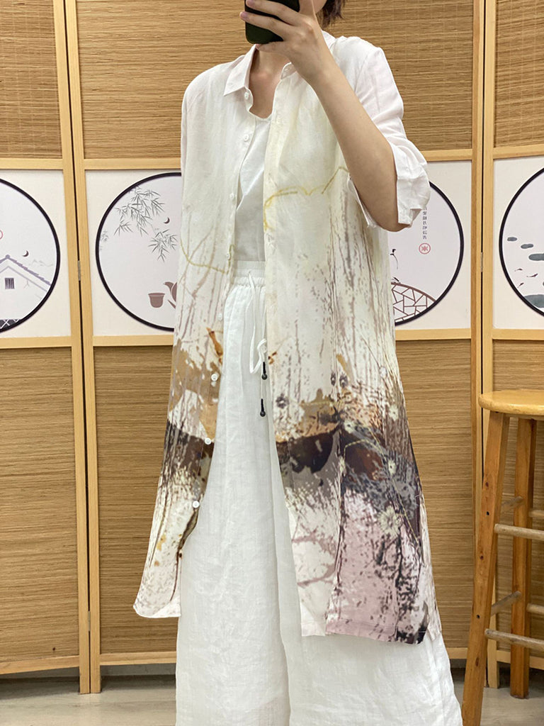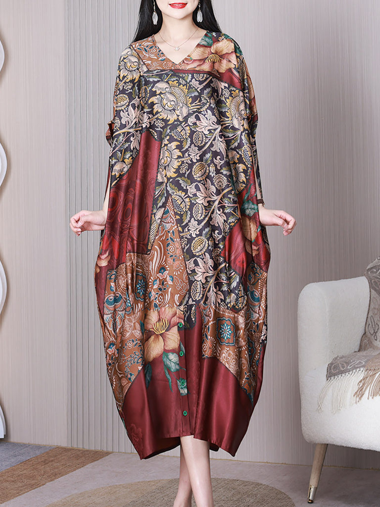 Abito in ramiè con pieghe a foglia etnica estiva vintage da donna taglie forti