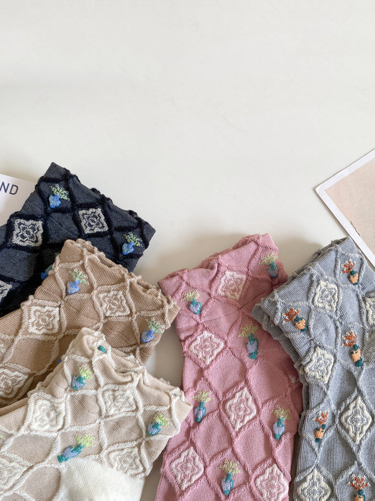 5 paia di calzini corti da donna in jacquard floreale artistico