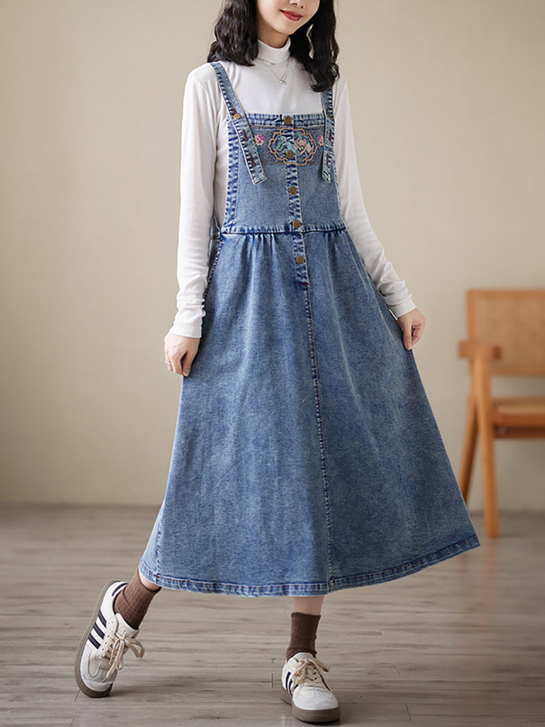 Pantaloni Capri dritti in denim con fiori retrò da donna