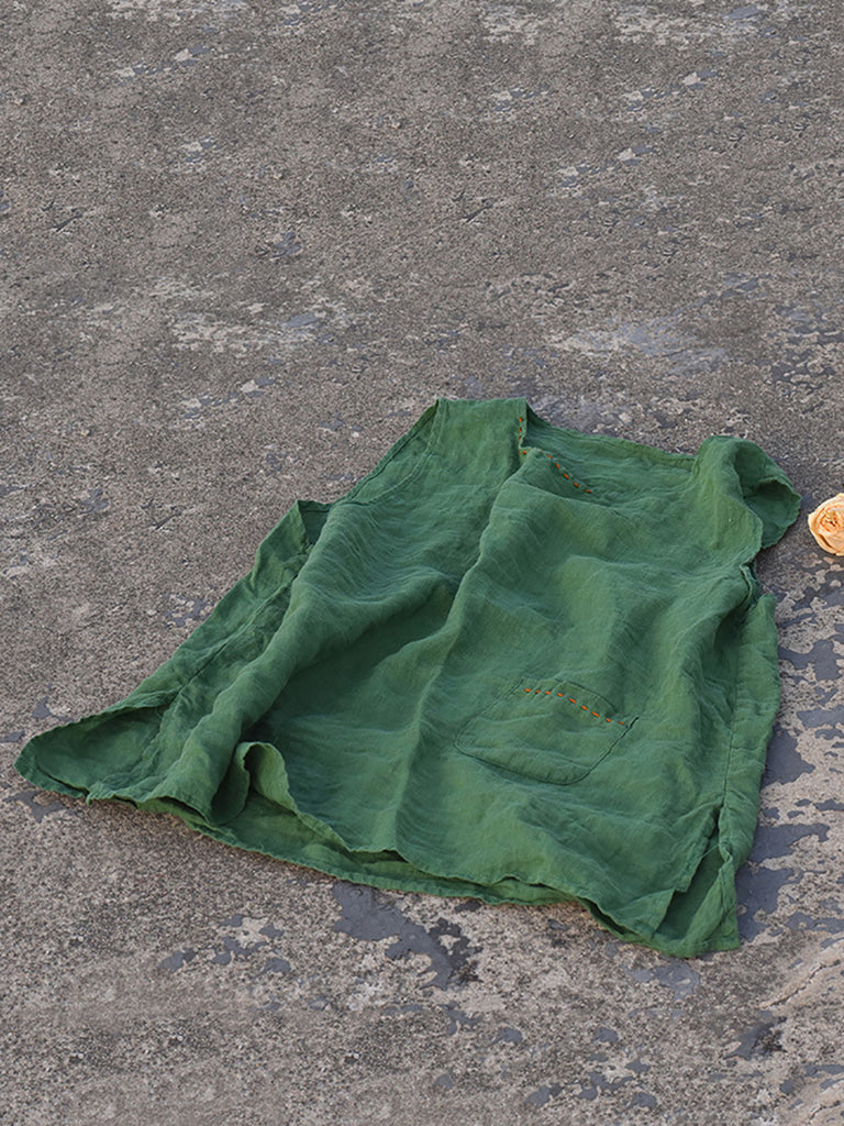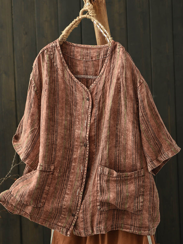 Camicia estiva da donna in lino con scollo a V e righe retrò