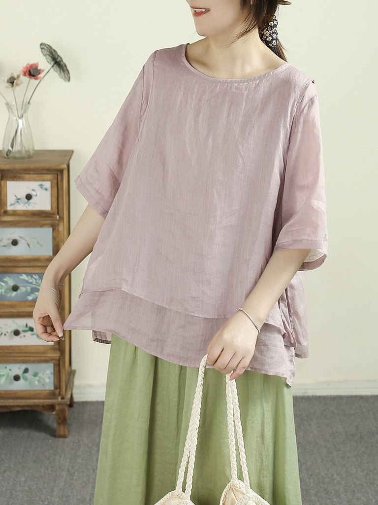 Gilet estivo vintage floreale con scollo a V in ramiè da donna