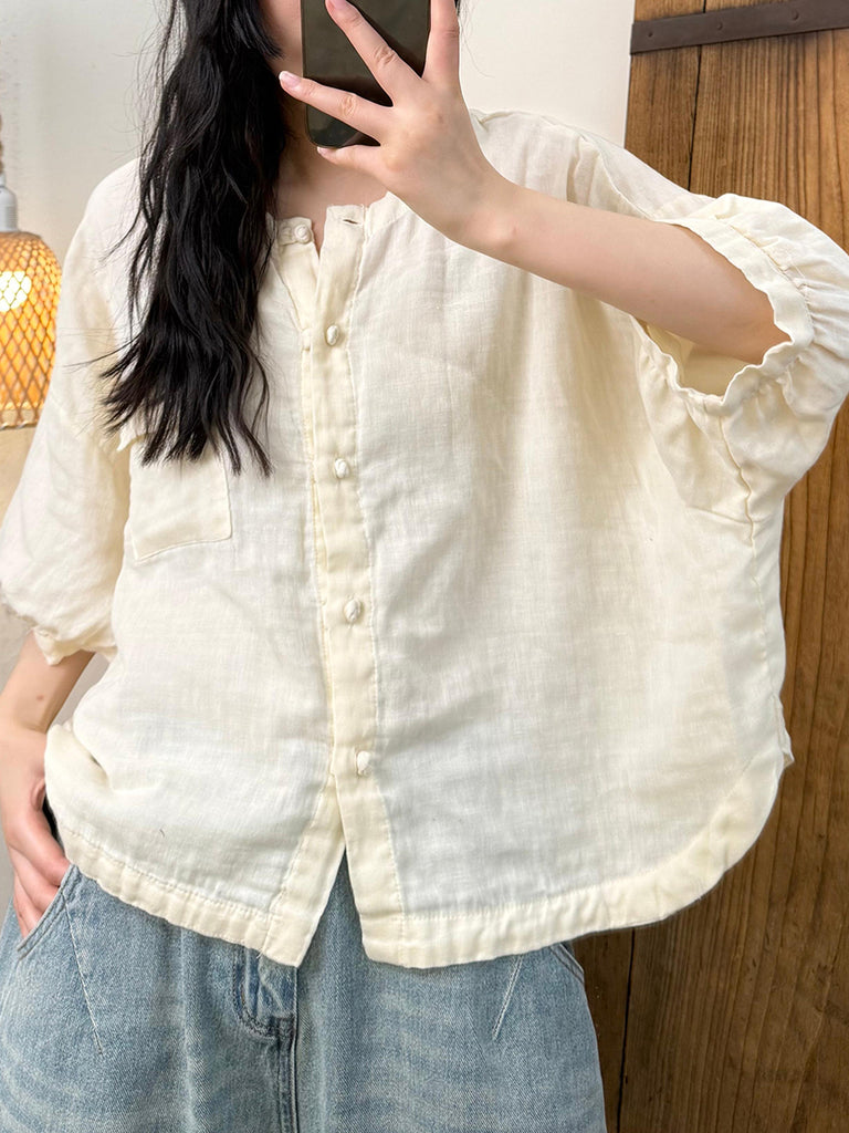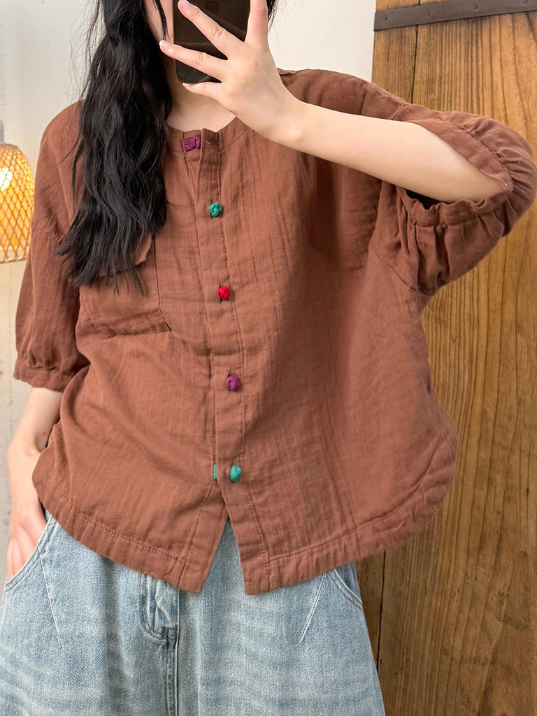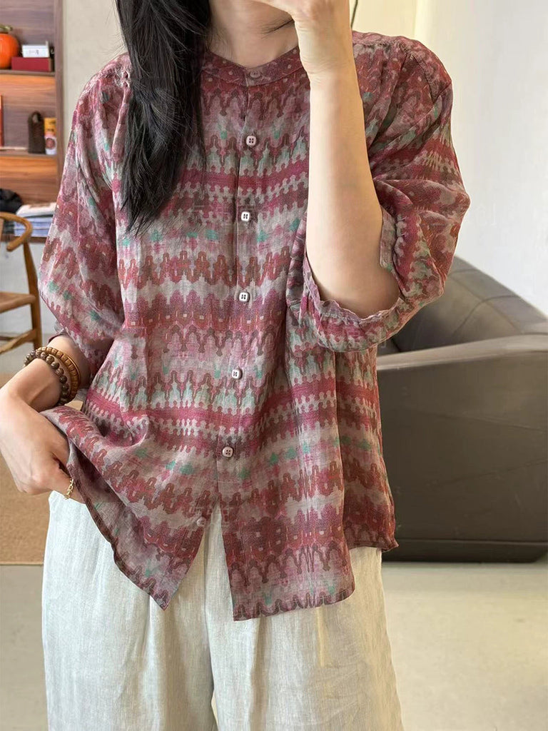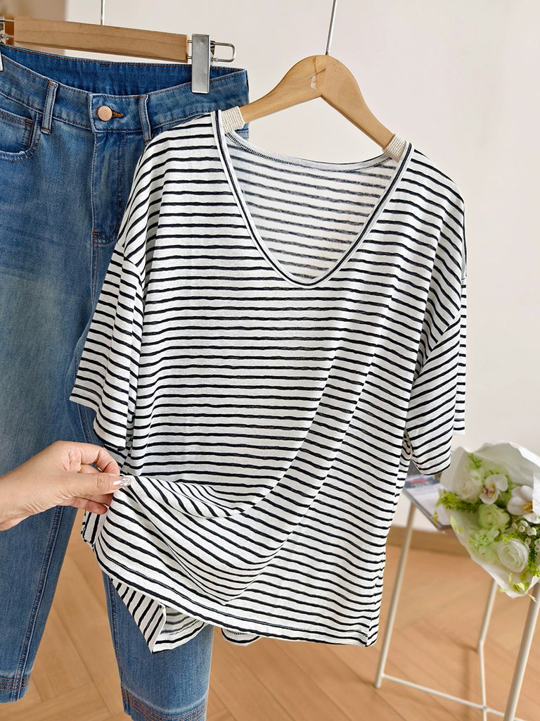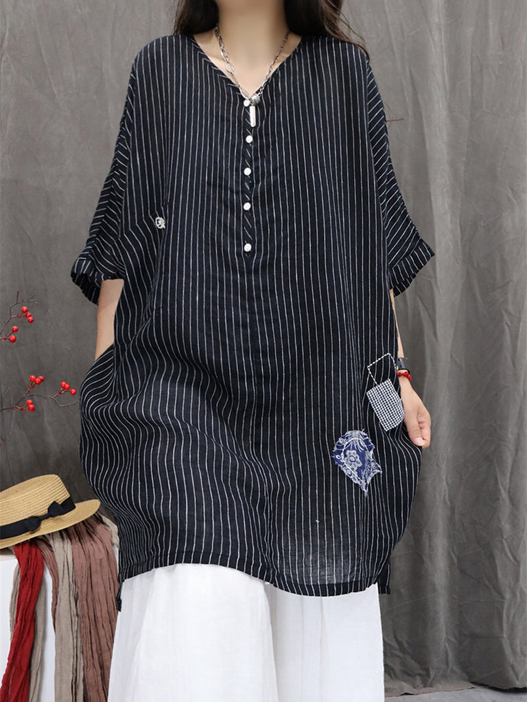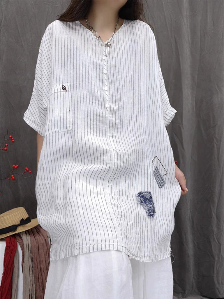 Camicia estiva da donna con scollo a V, a righe e quadri, 100% cotone