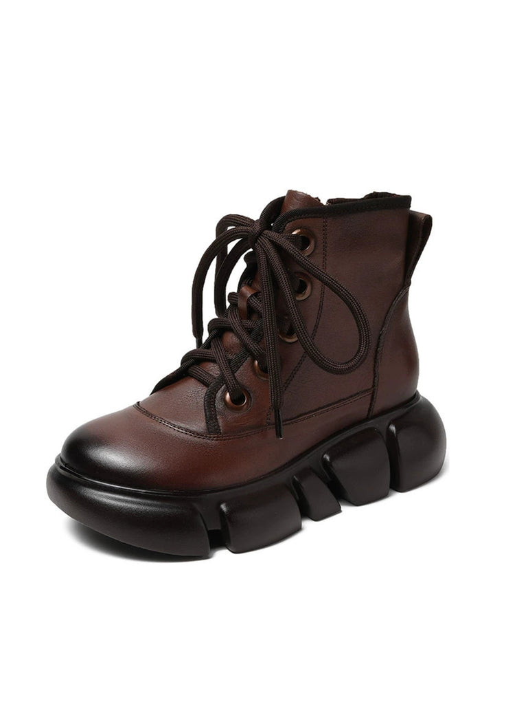 Stivali Martin invernali da donna in pelle color puro con plateau