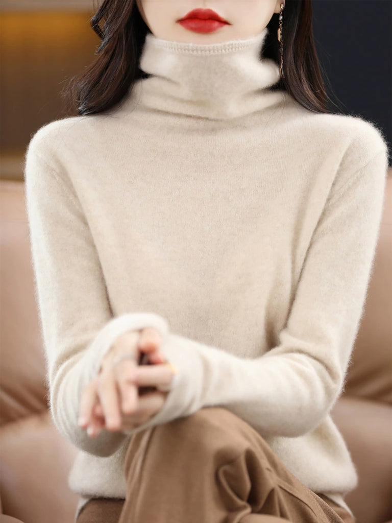 Maglione da donna con collo alto, casual, autunnale, di colore puro