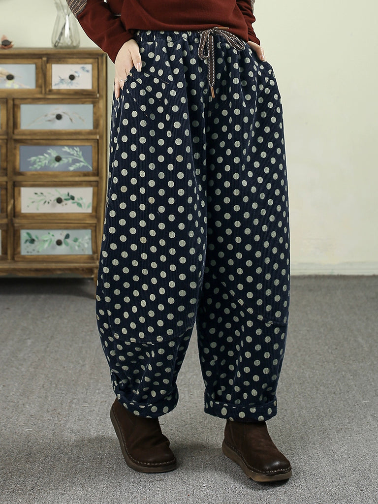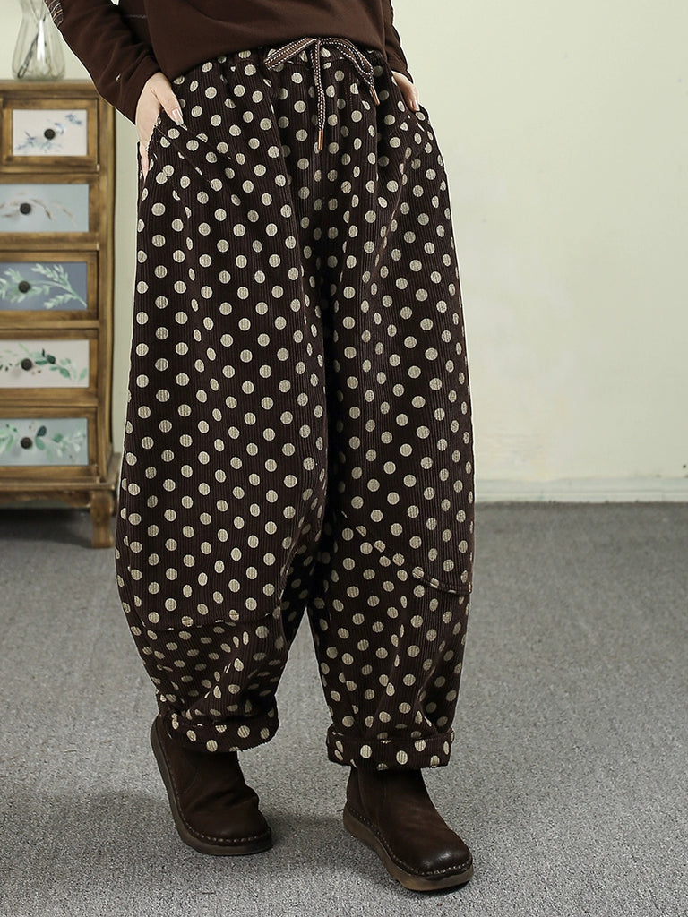 Pantaloni harem invernali da donna in velluto a coste con fodera in pile