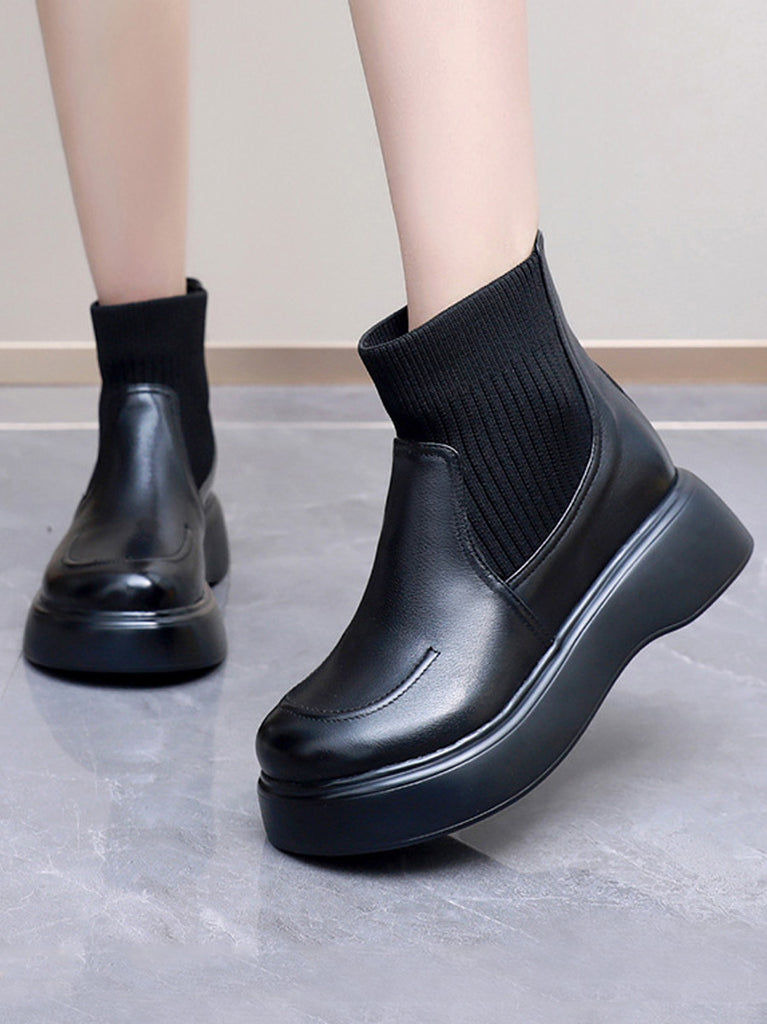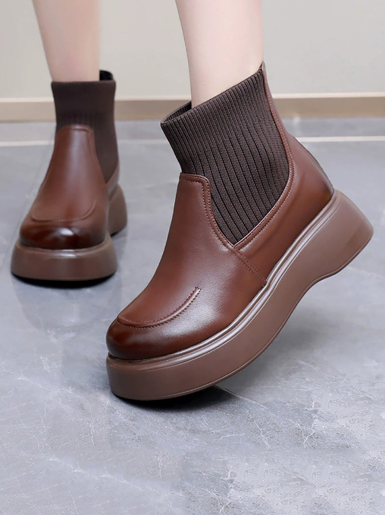 Stivali invernali da donna in vera pelle, foderati in pile, caldi e casual