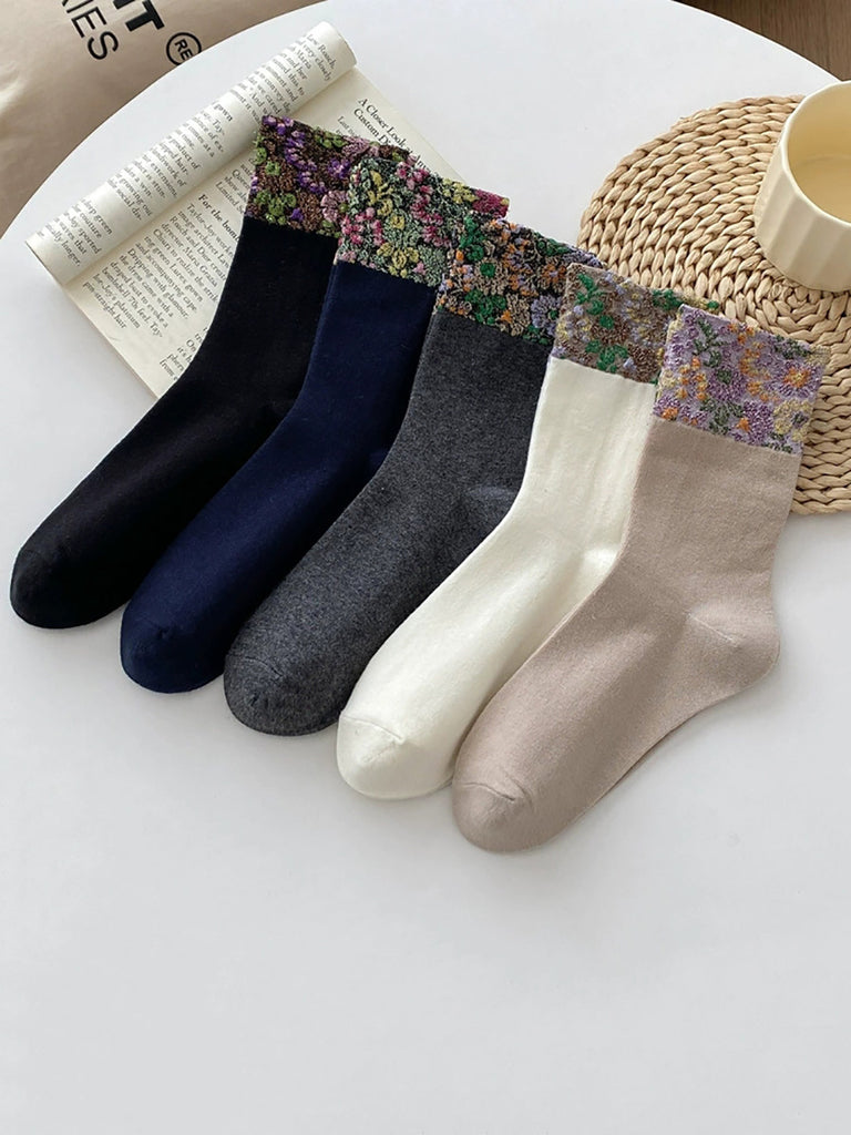 5 paia di calzini da donna in jacquard con fiori invernali vintage