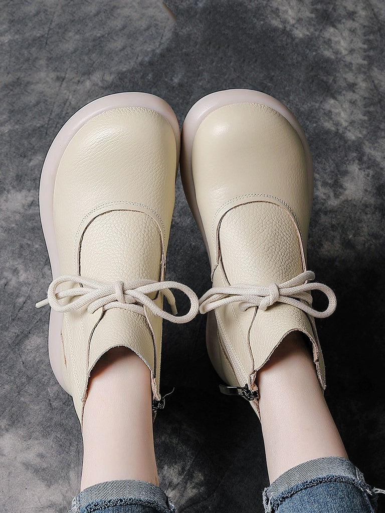 Scarpe basse retrò da donna in vera pelle foderate in pile