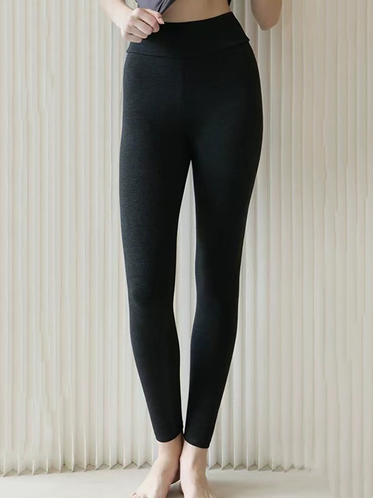 Leggings invernali caldi da donna, a vita alta, di colore puro