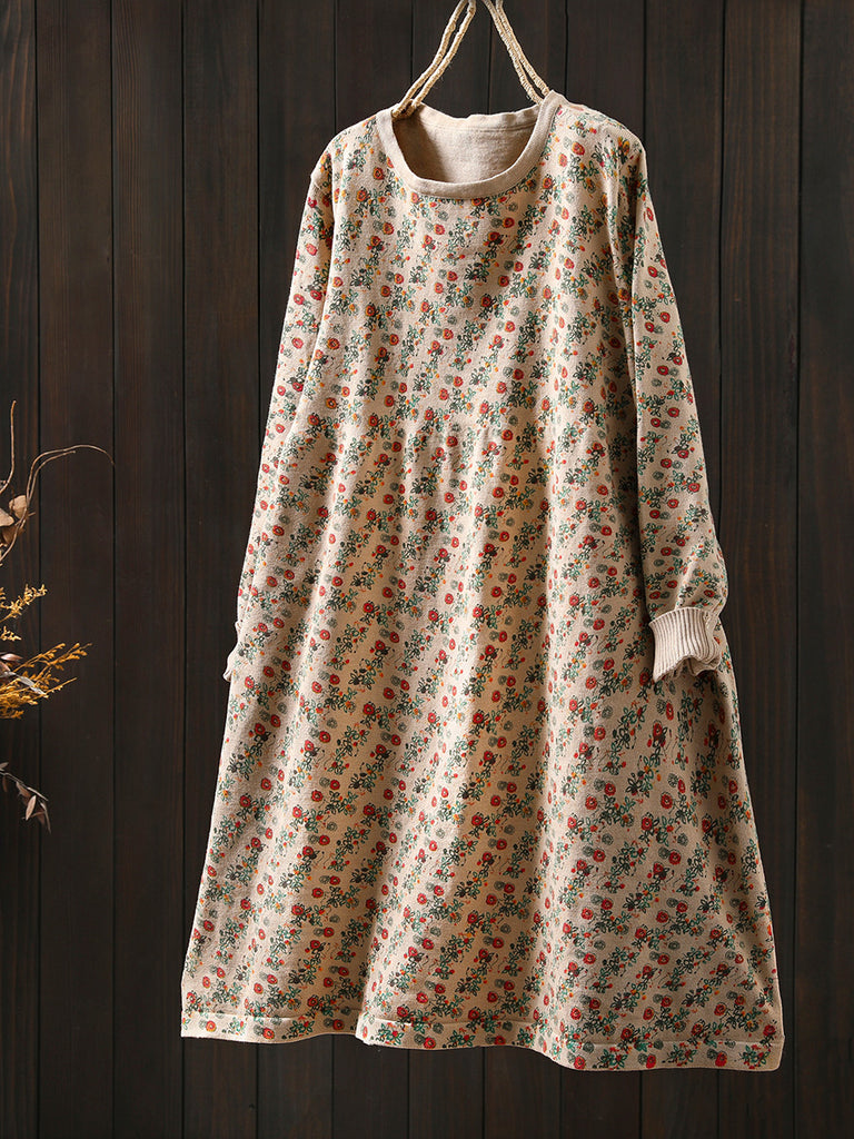 Abito da donna in maglia con scollo a V e motivo floreale vintage autunnale