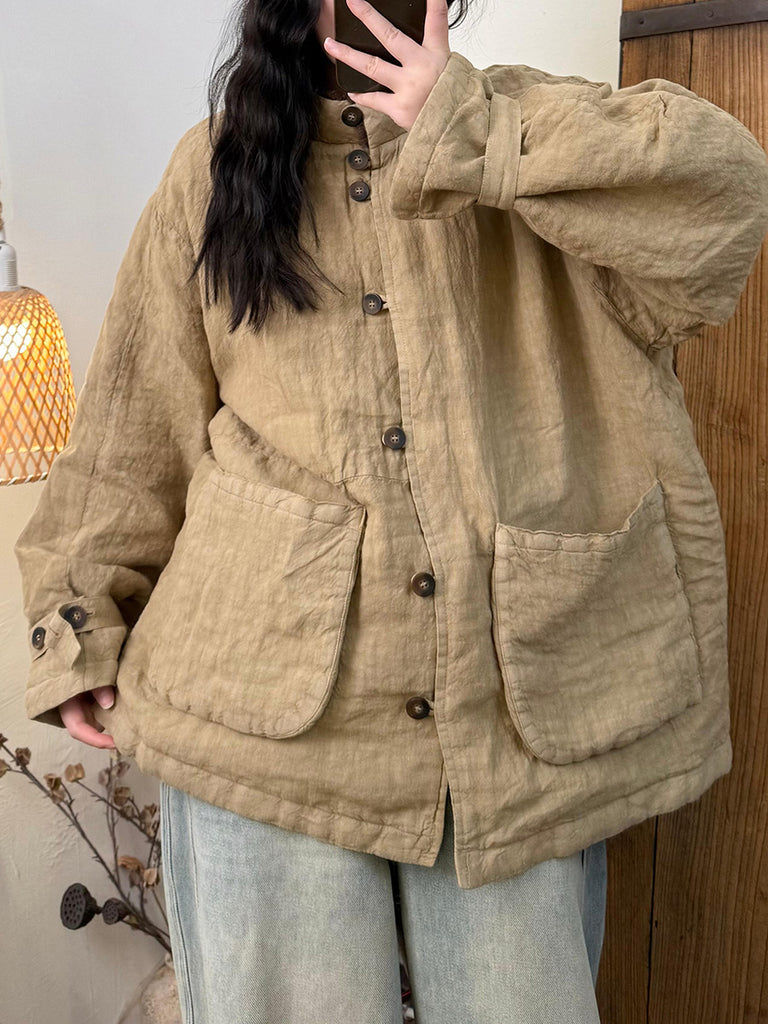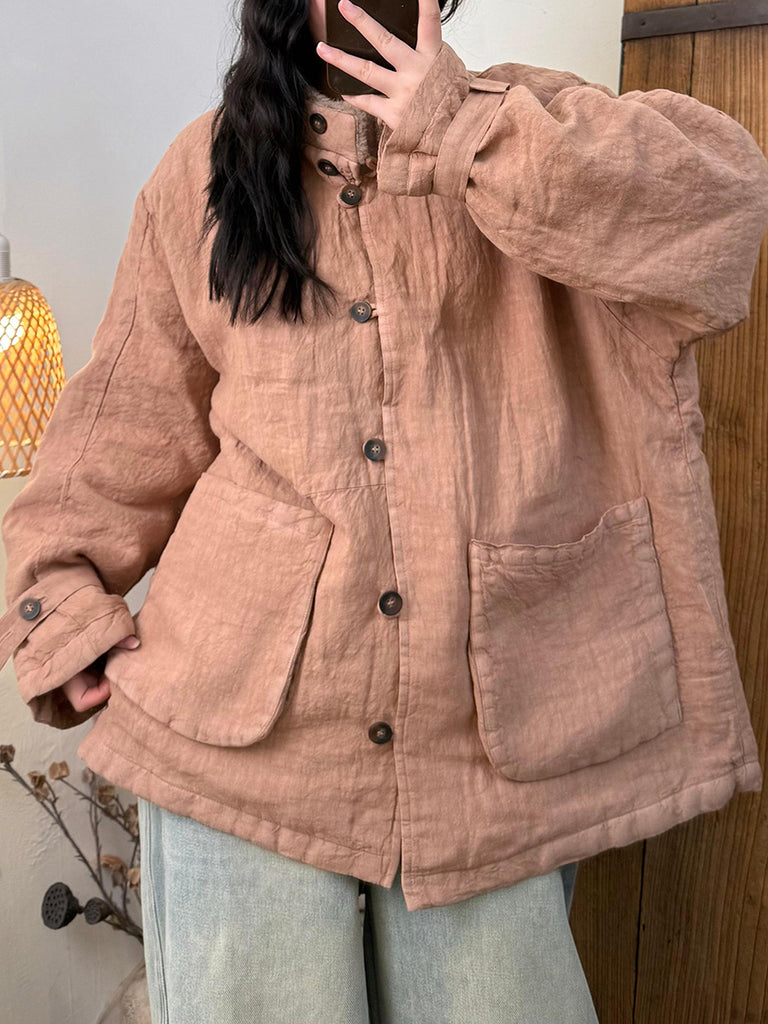 Cappotto invernale vintage da donna in pile di lino con collo alto