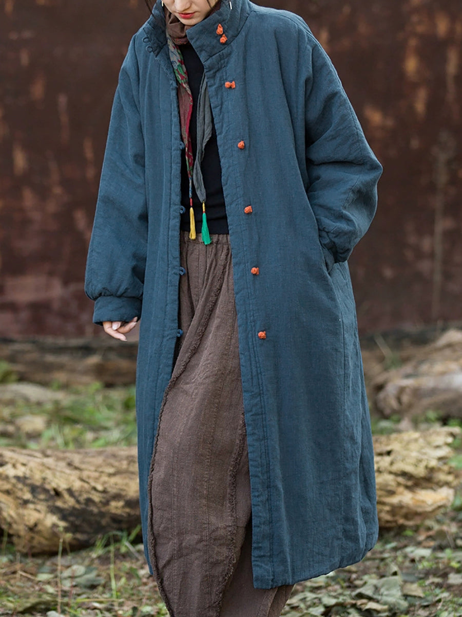 Cappotto imbottito invernale da donna con collo alto, colore puro
