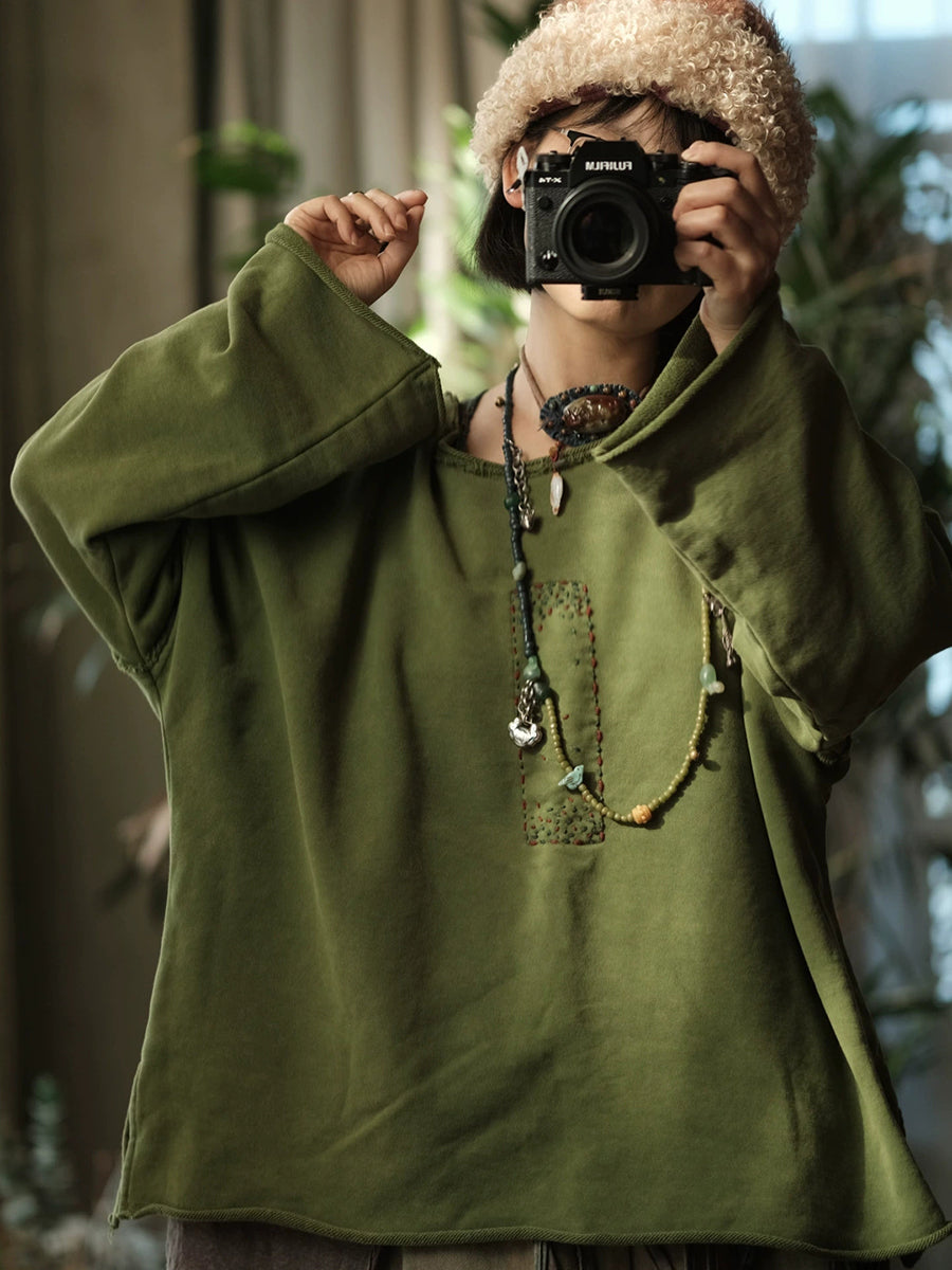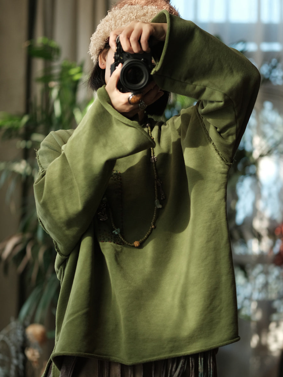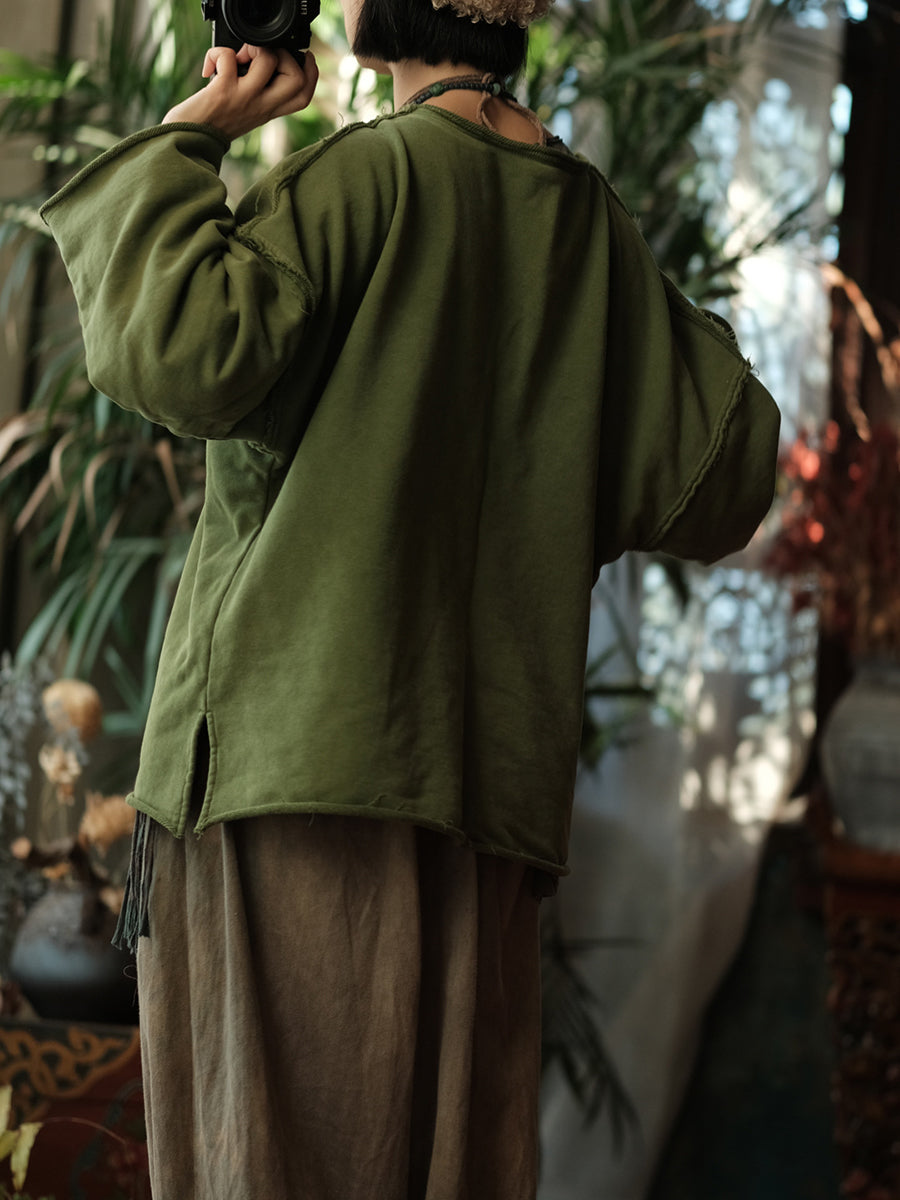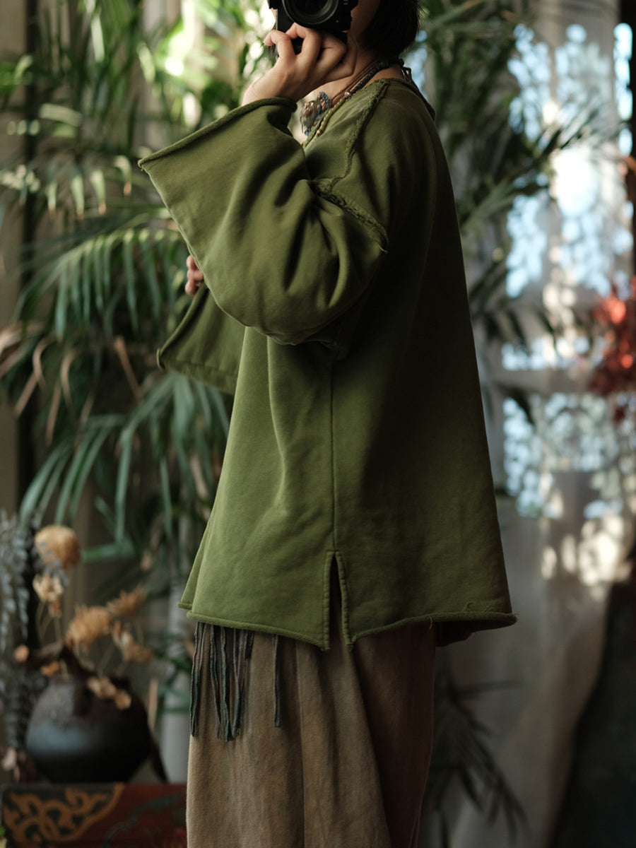 Camicetta da donna invernale retrò con cuciture in tinta unita e scollo a V