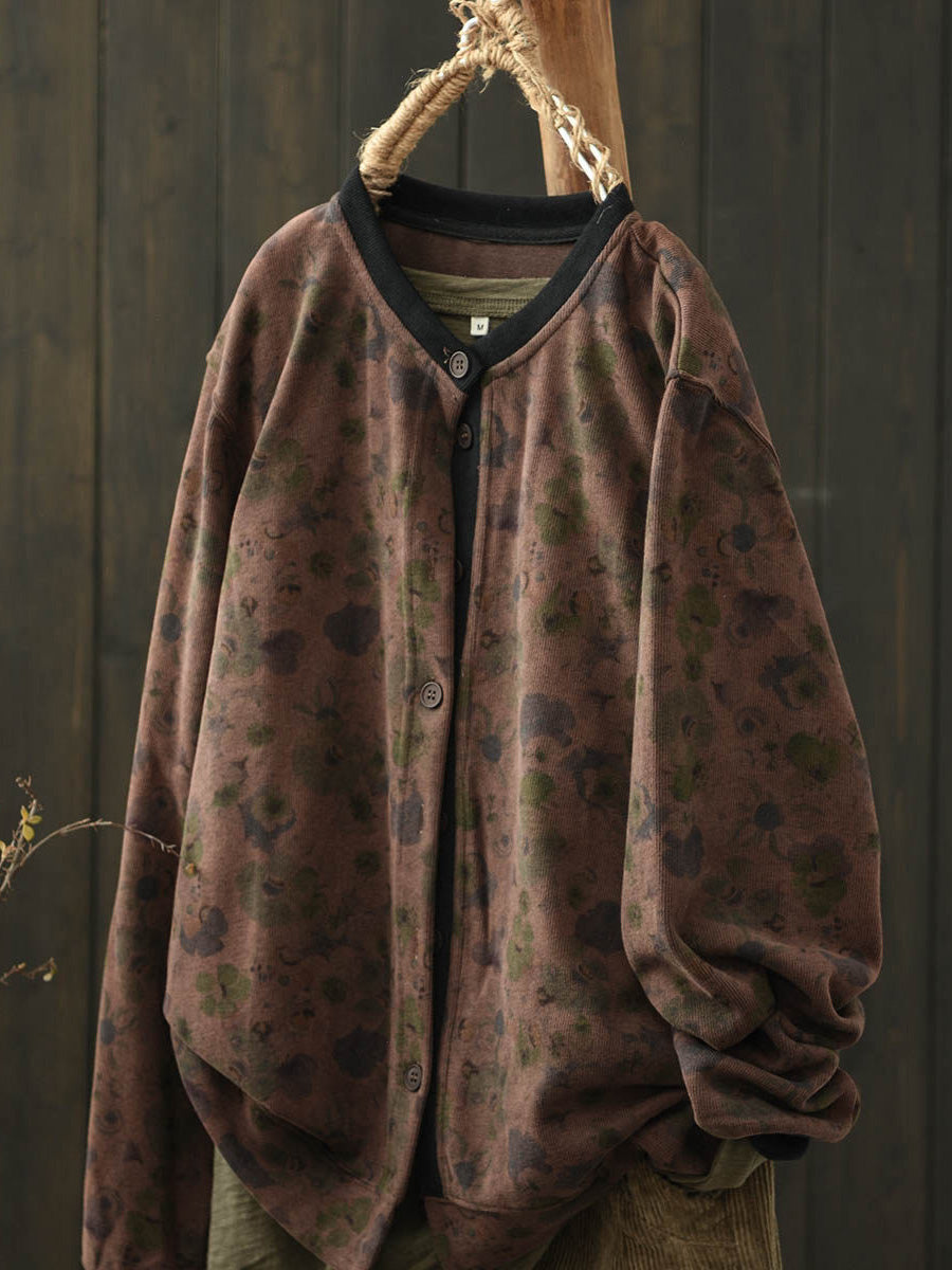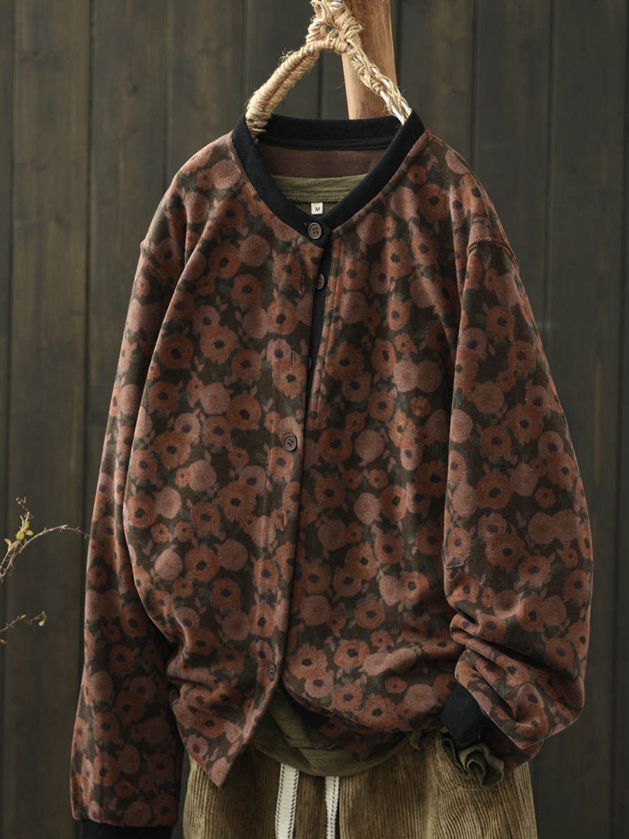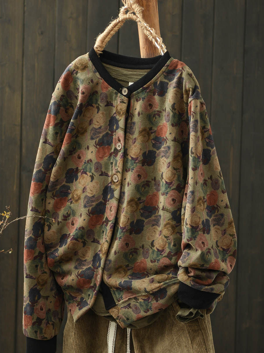 Cappotto da donna in cotone con scollo a V e motivo floreale vintage primaverile