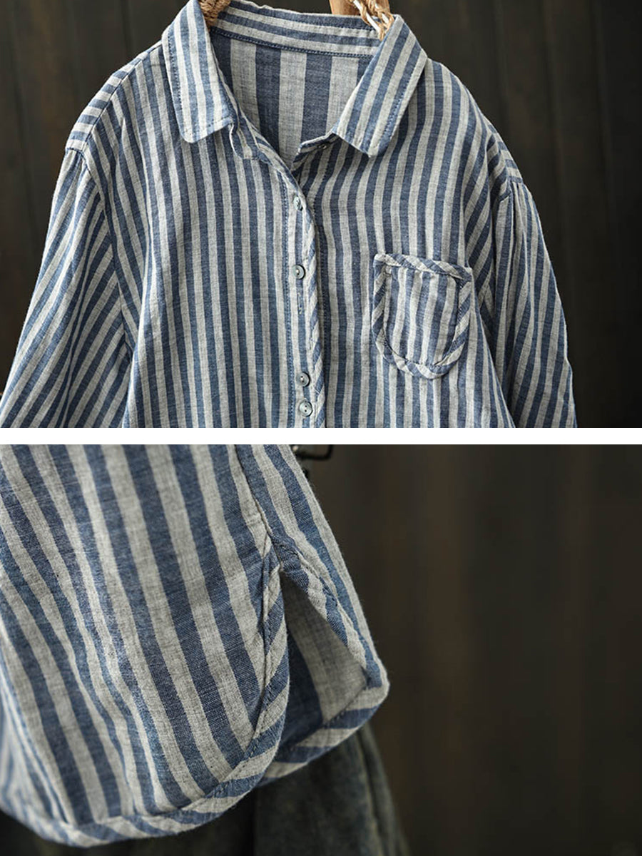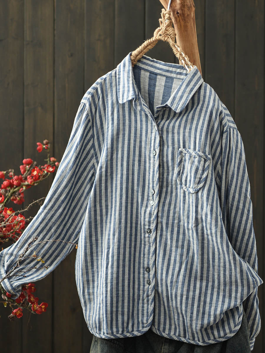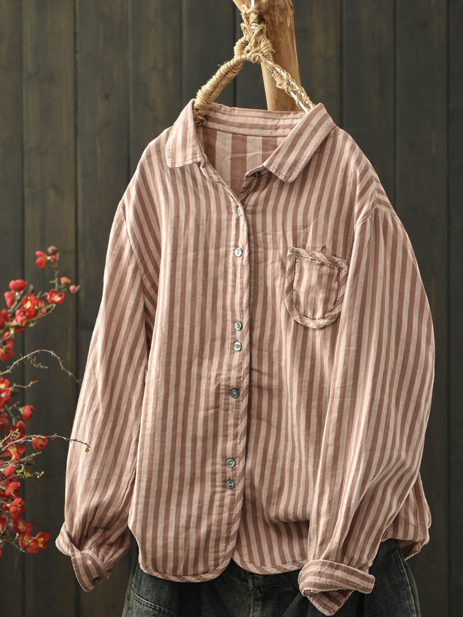 Camicia da donna in cotone con colletto rovesciato a righe autunnali