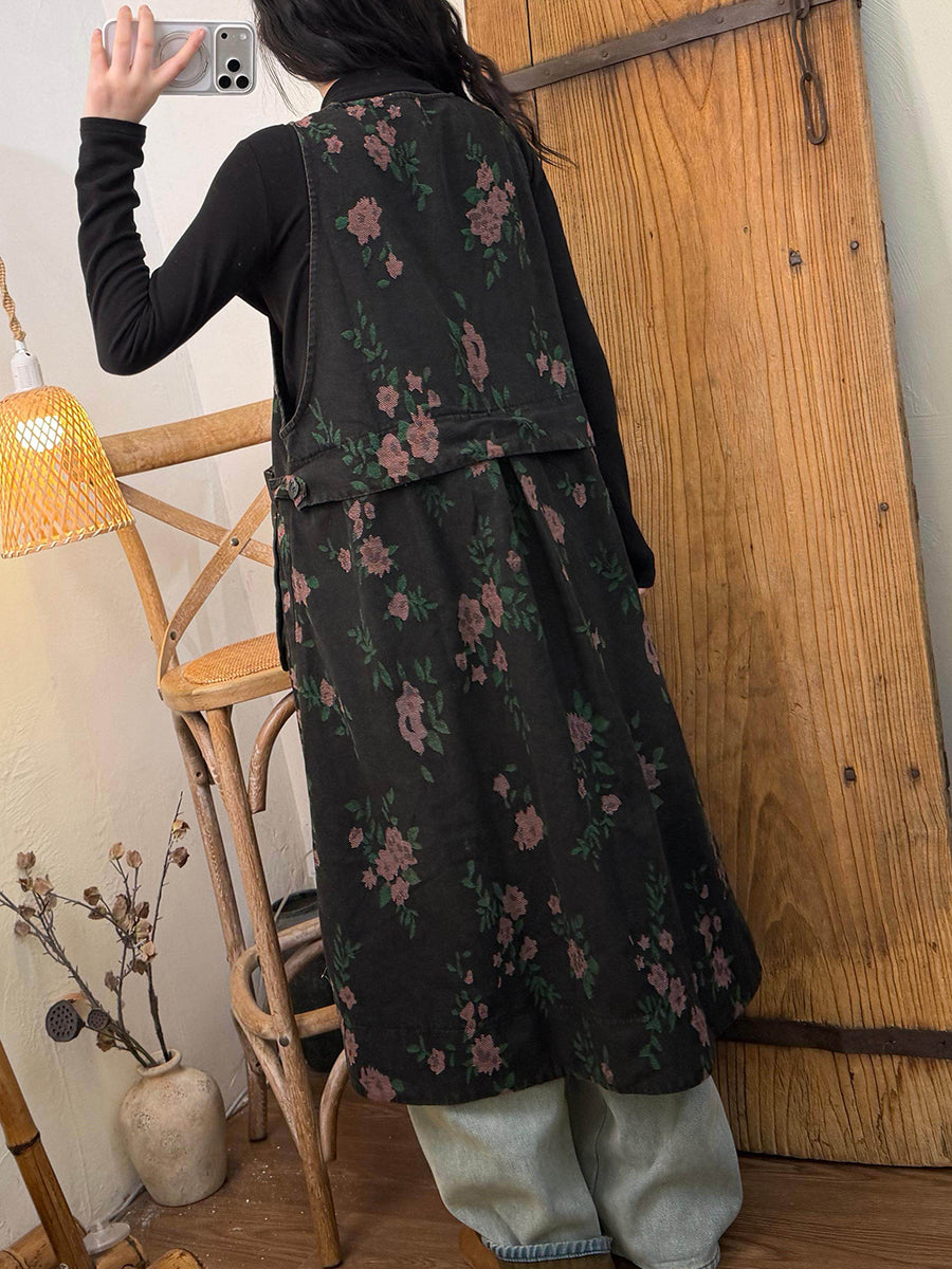 Realizzato in cotone, questo abito gilet lungo fino alla caviglia presenta un caratteristico motivo a pois e un design artistico. Ideale per l'autunno e l'inverno, unisce comfort e stile creativo.