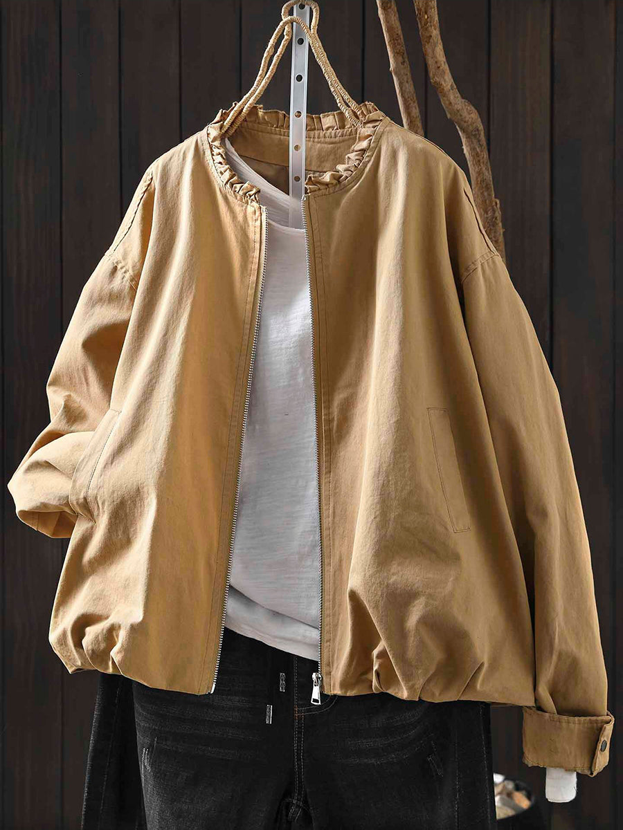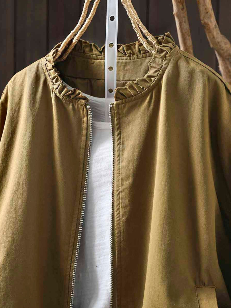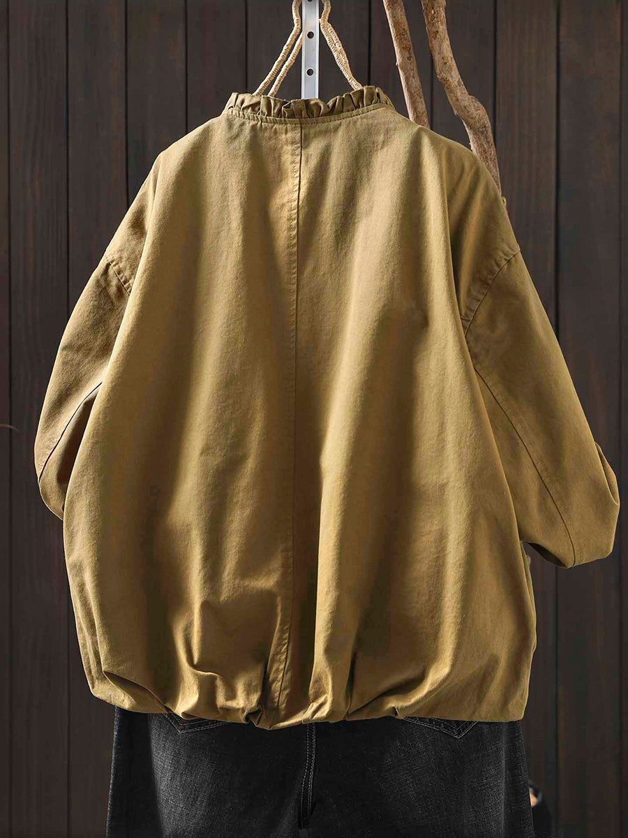 Cappotto da donna in puro cotone con collo alto, colore puro, 100%