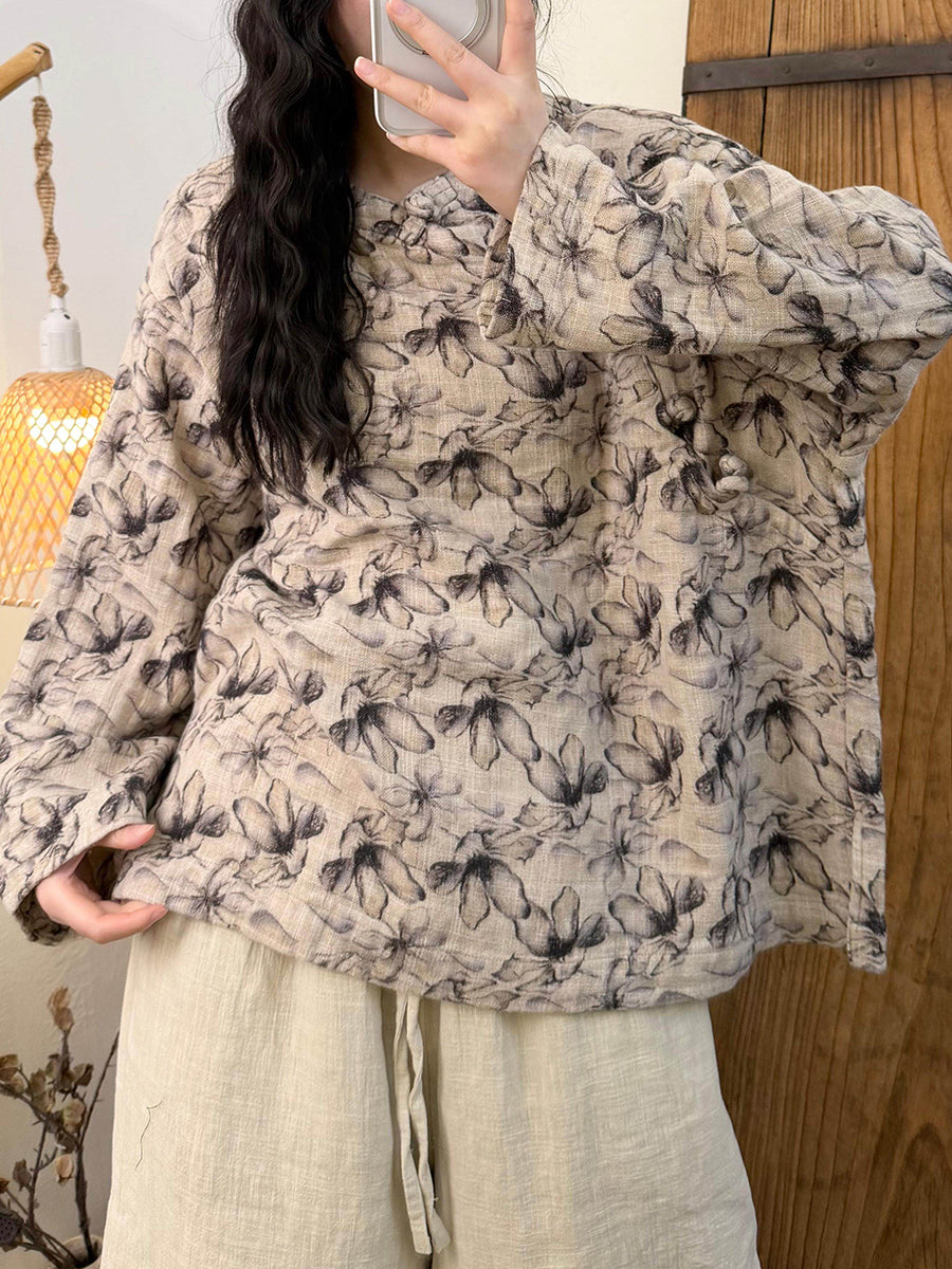 Camicetta da donna con scollo a V e motivo floreale primaverile