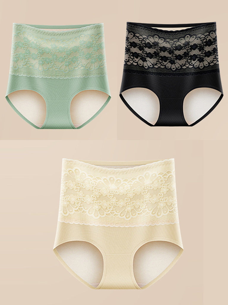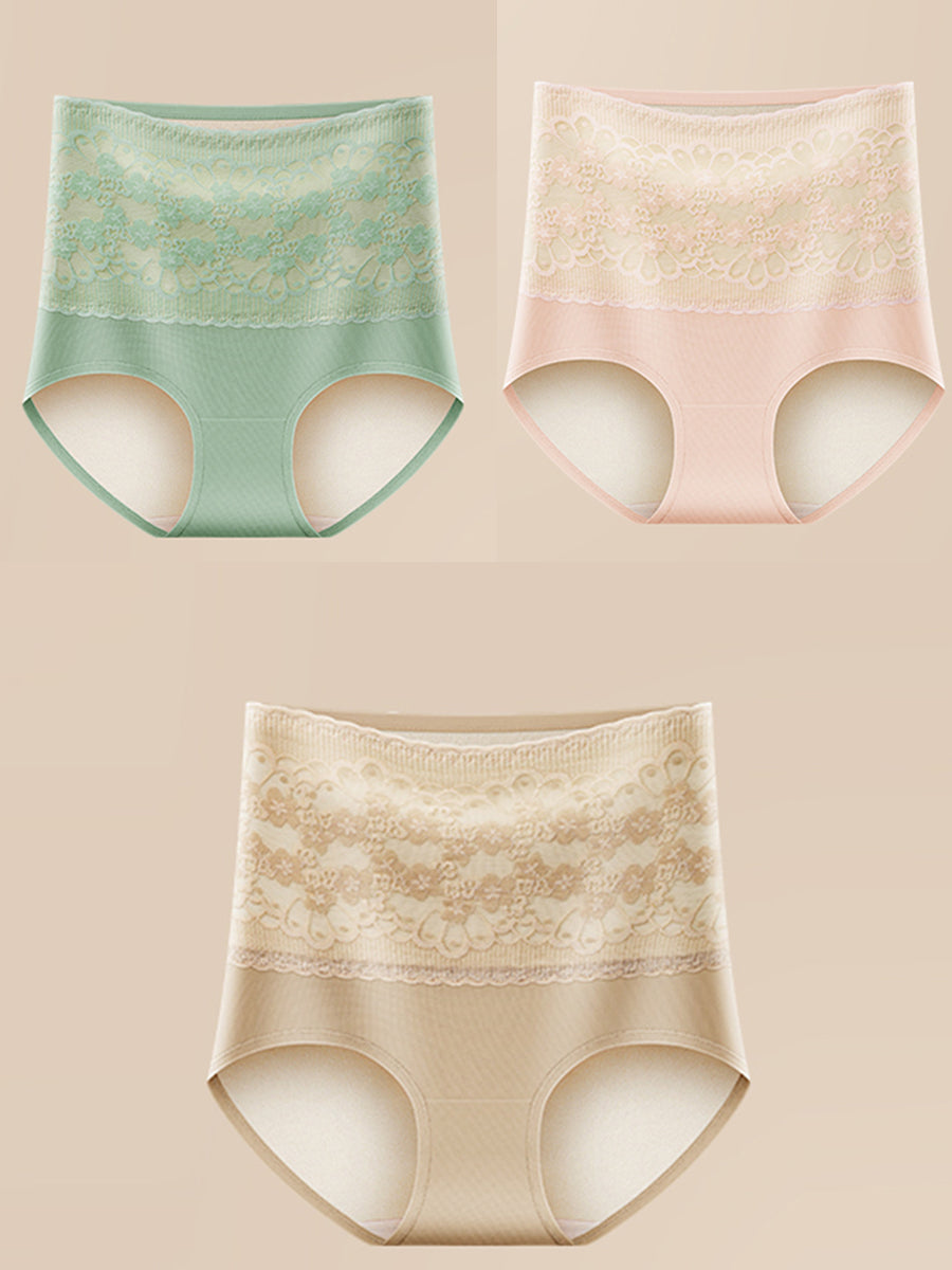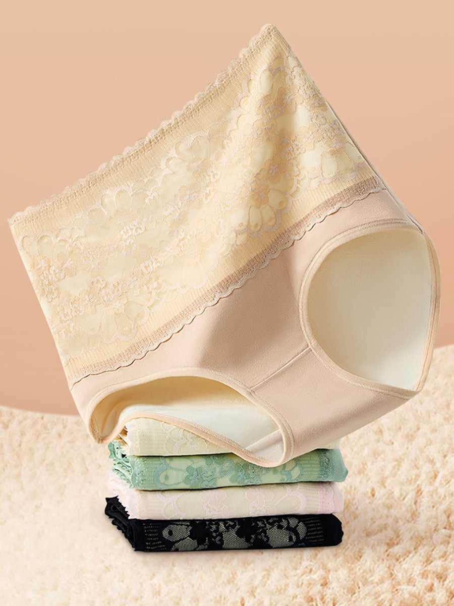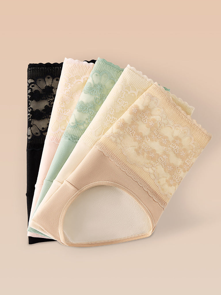 5 pezzi di biancheria intima da donna in cotone a vita alta di colore puro