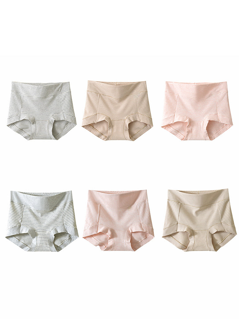 6 pezzi di biancheria intima casual da donna a righe in cotone a vita alta