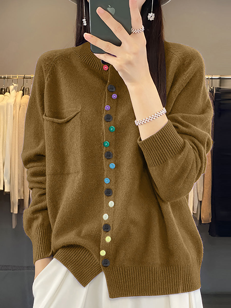 Maglione lavorato a maglia in lana autunnale da donna con scollo a V e colore puro