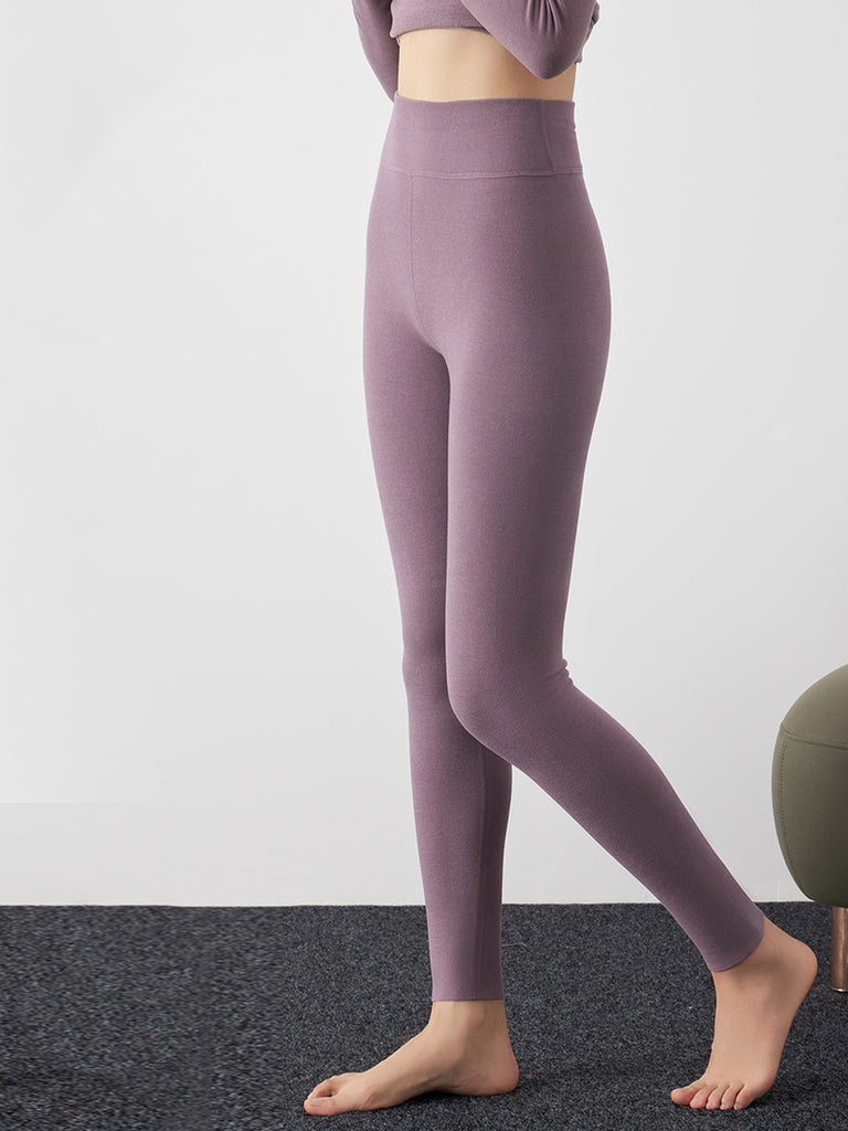 Leggings da donna autunnali caldi e foderati in pile, colore puro