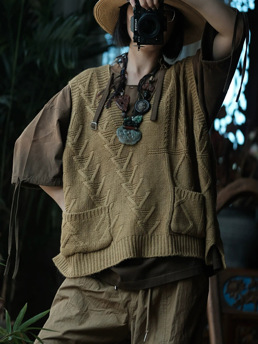 Gilet in lana con scollo a V, casual, autunnale, da donna, colore puro