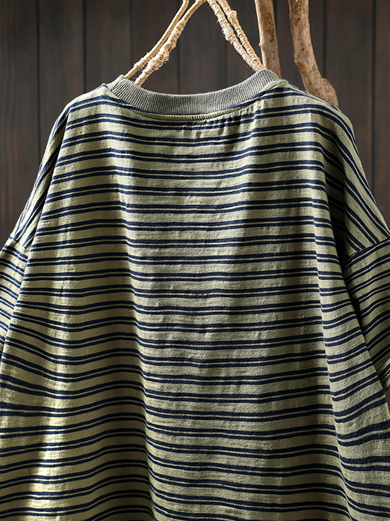 Camicia casual estiva a righe da donna in 100% cotone con scollo a V