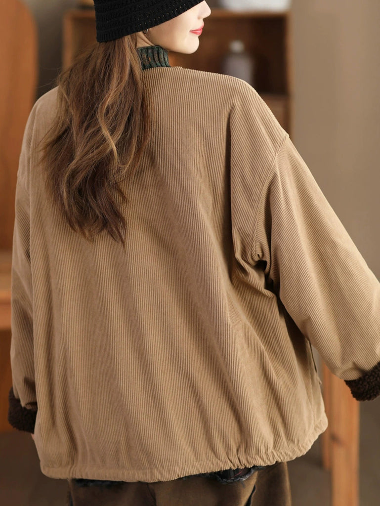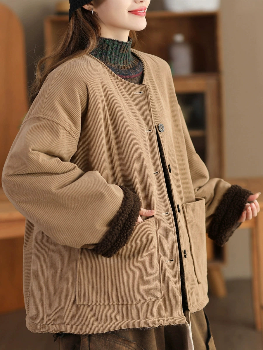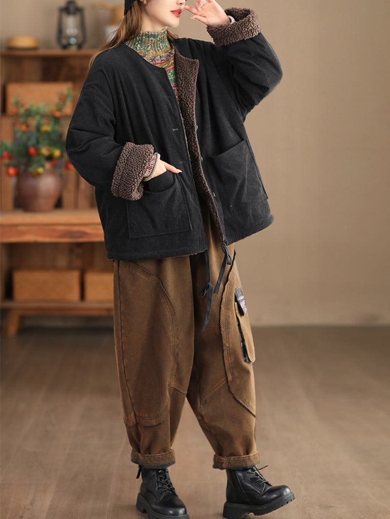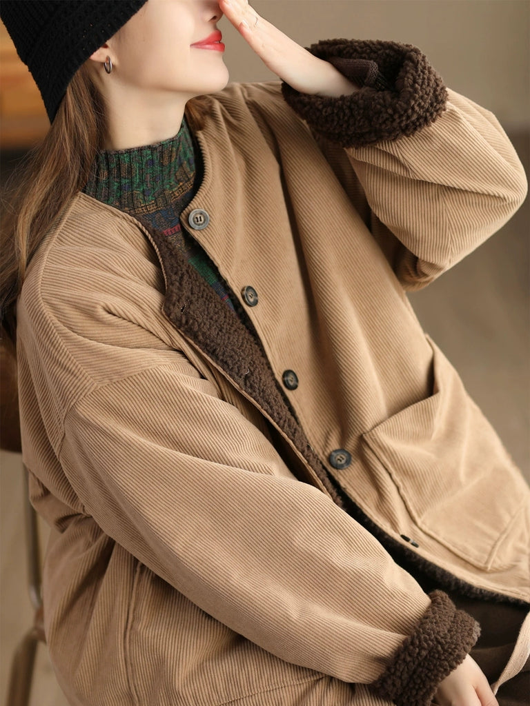 Giacca invernale vintage da donna con scollo a V e fodera in pile