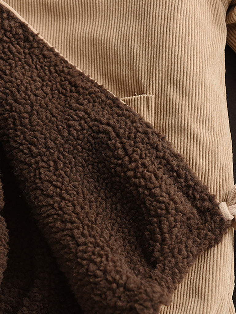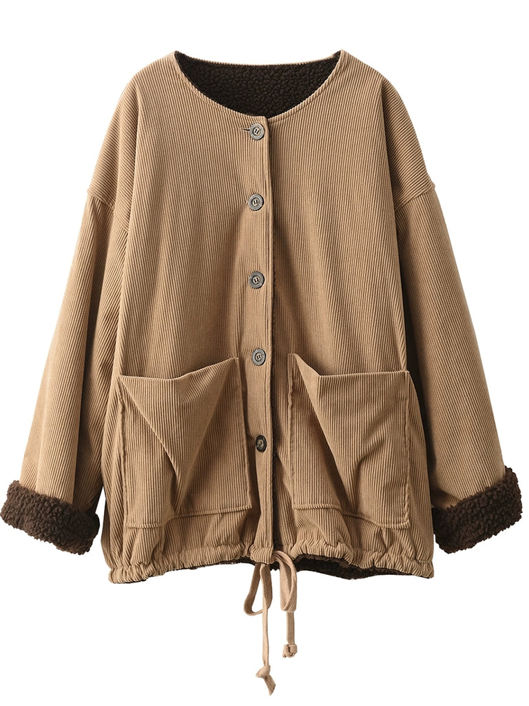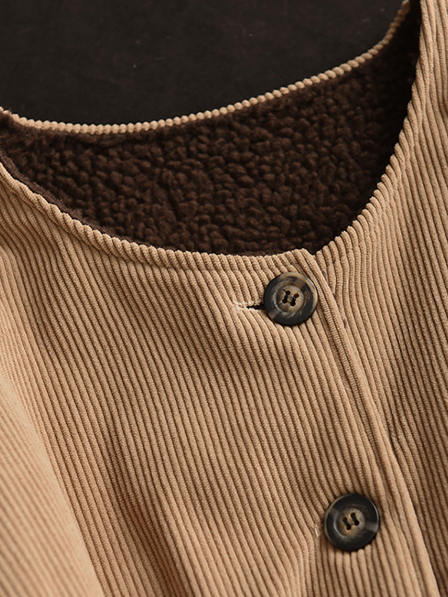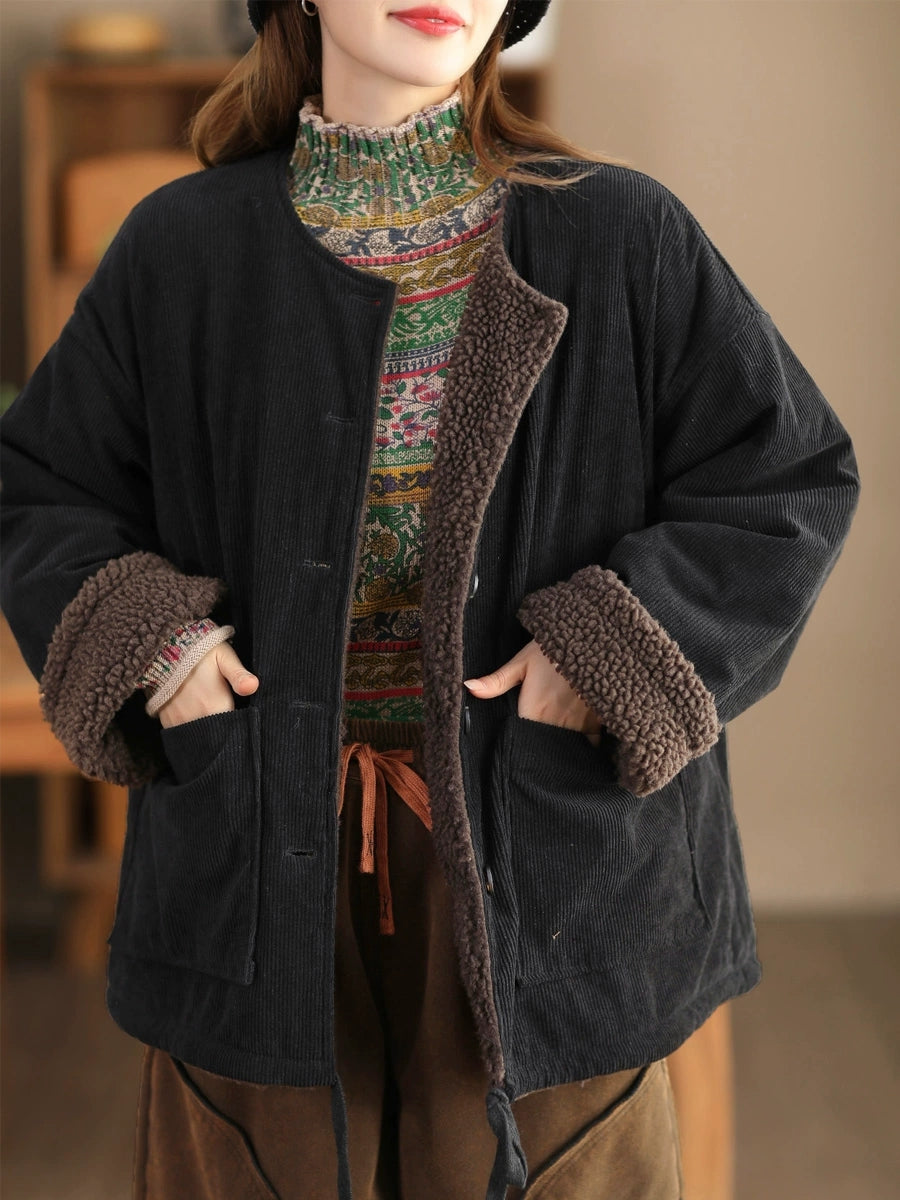 Giacca invernale vintage da donna con scollo a V e fodera in pile