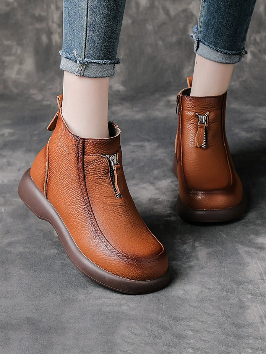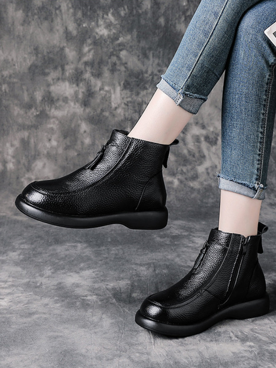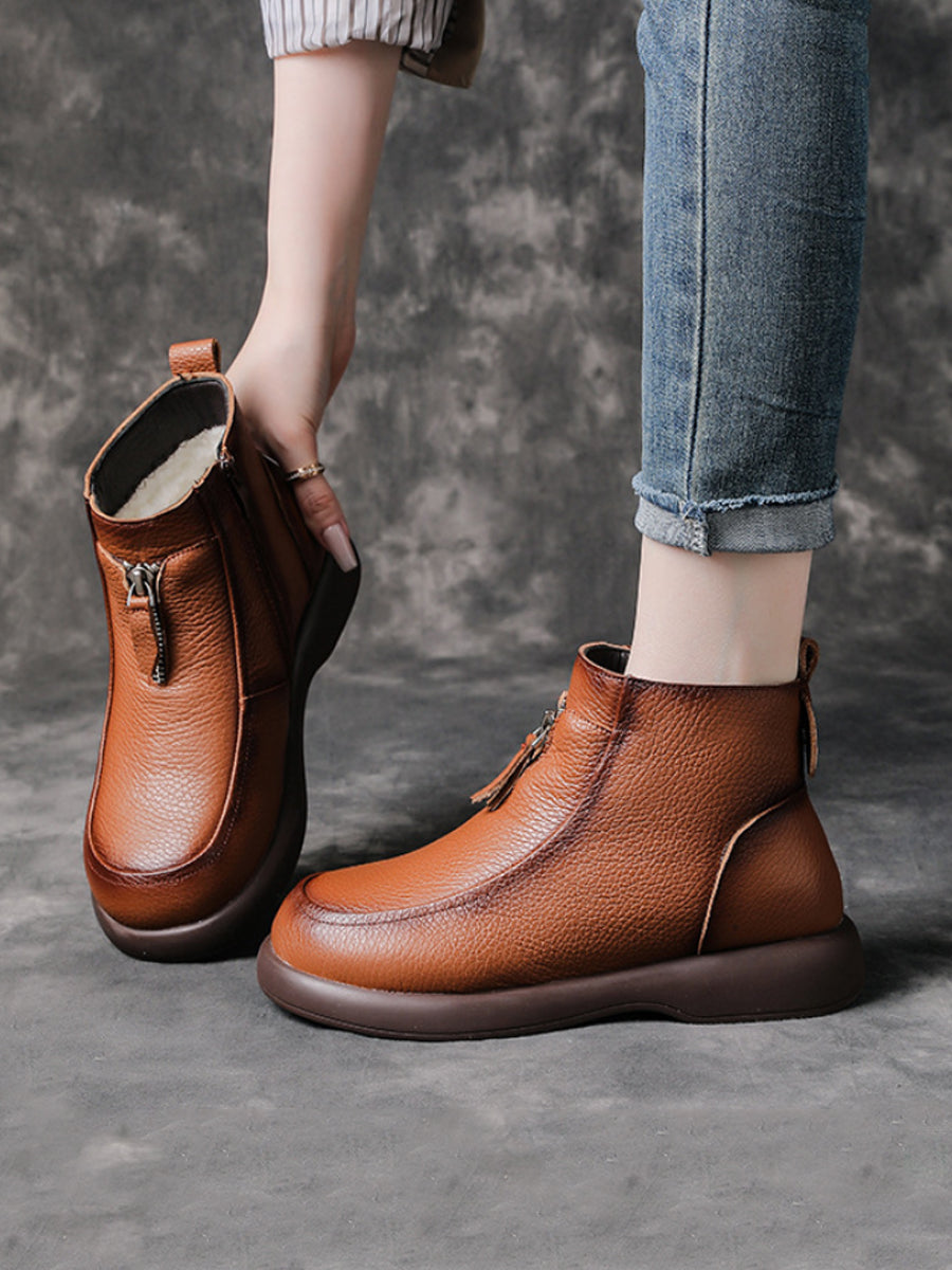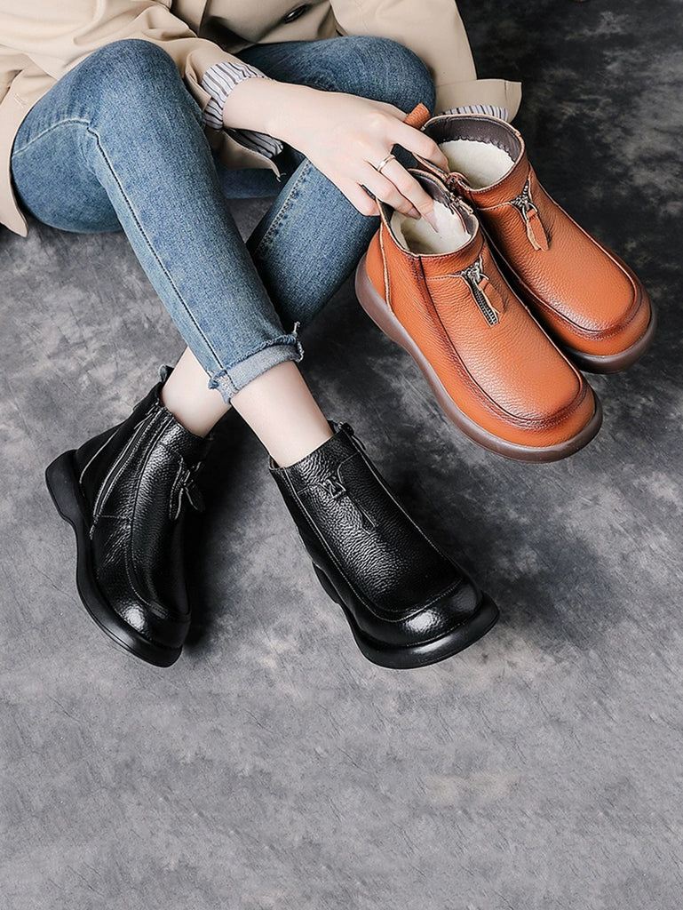 Stivaletti invernali da donna in vera pelle foderati in pile