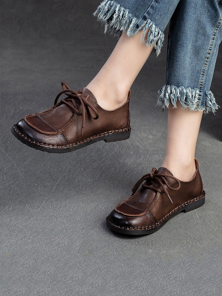 Scarpe basse vintage da donna in vera pelle con cuciture