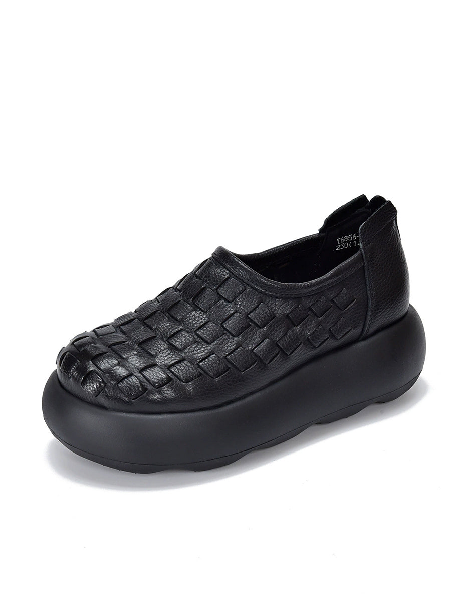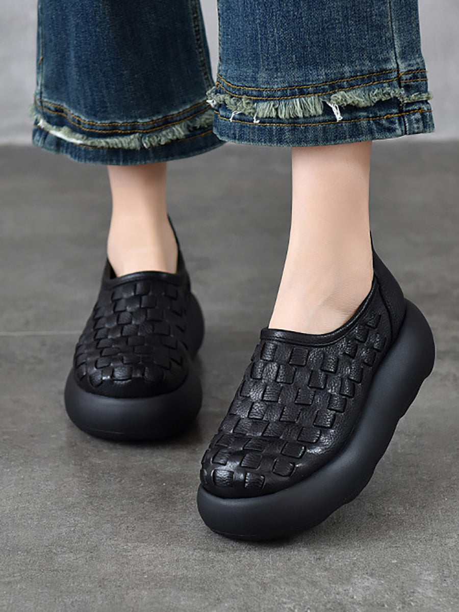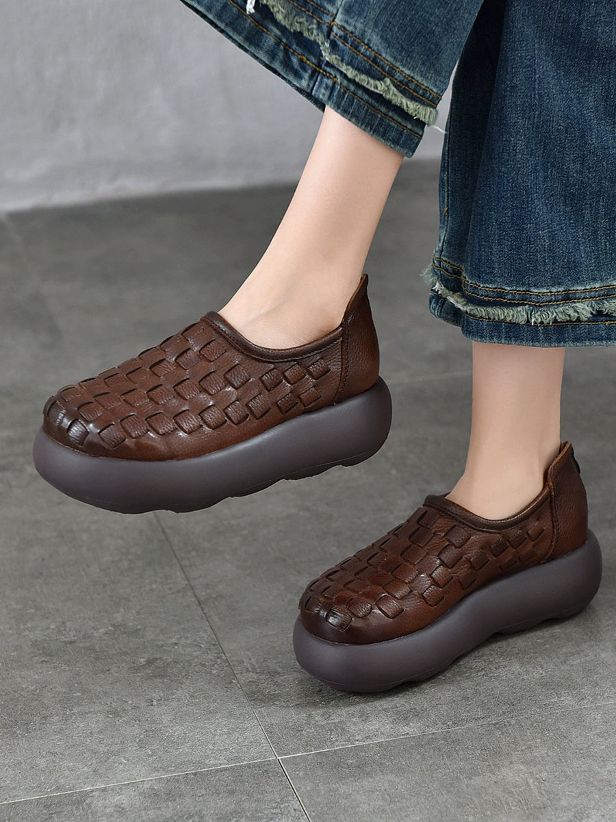 Scarpe da donna con plateau in vera pelle intrecciata primaverile