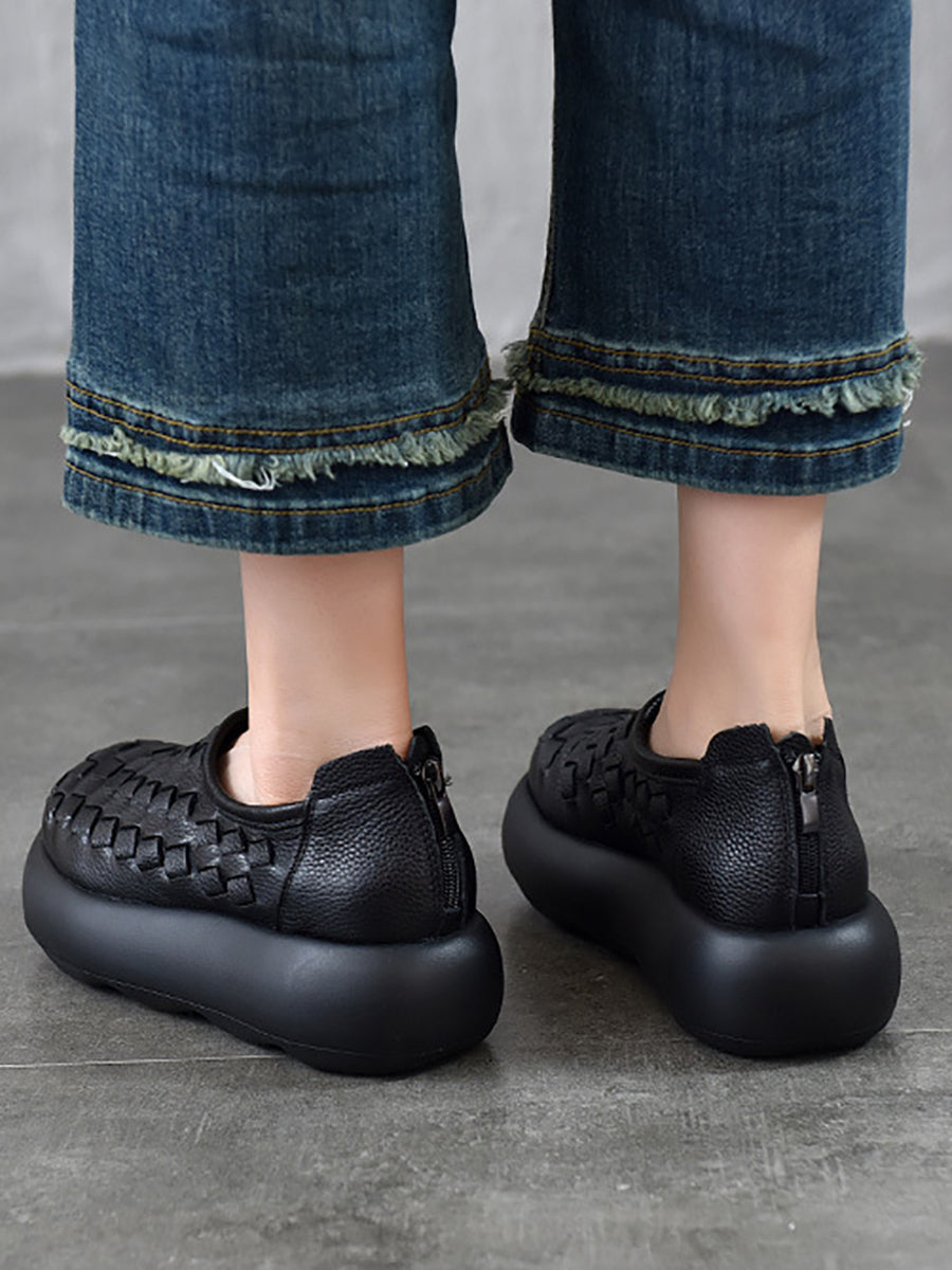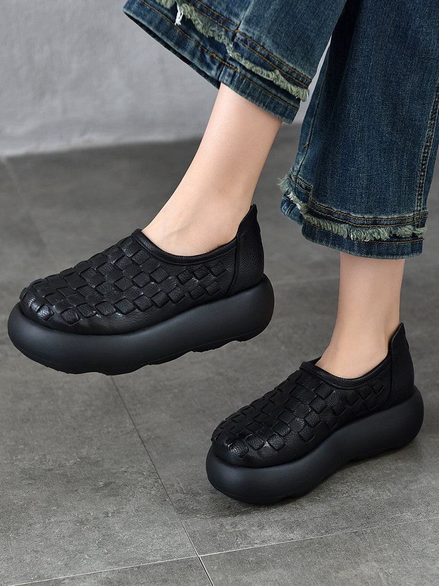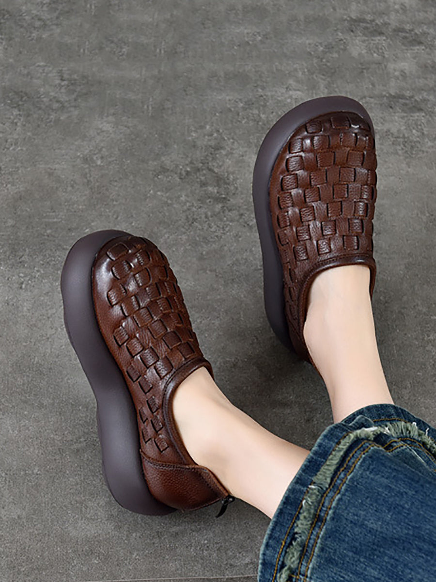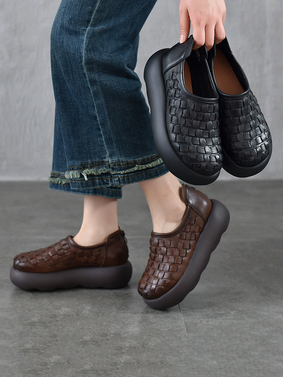 Scarpe da donna con plateau in vera pelle intrecciata primaverile
