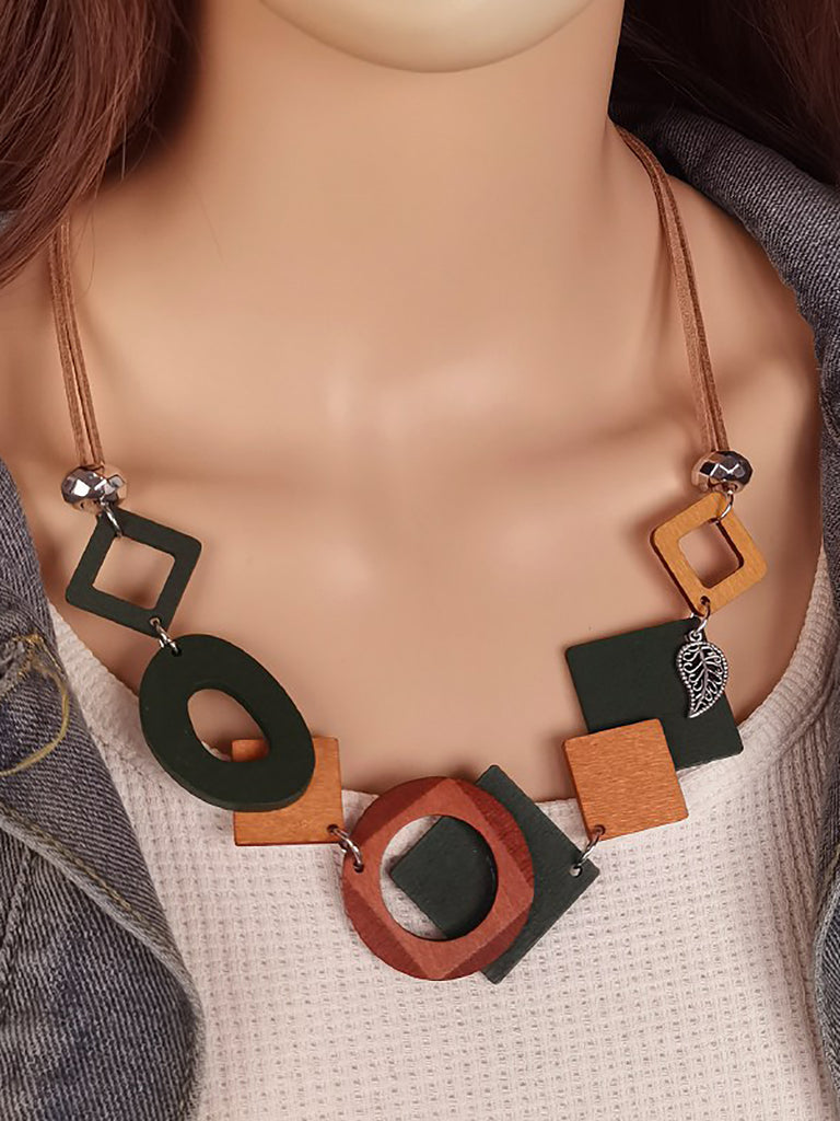 Collana in lega di resina e legno con motivo geometrico artistico da donna