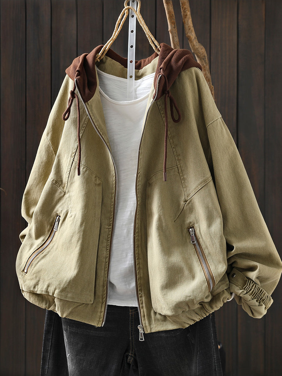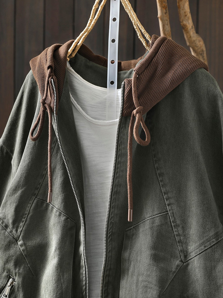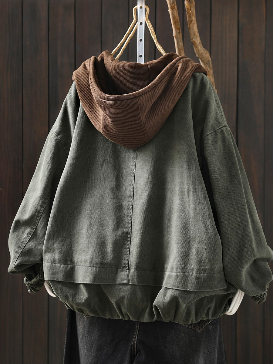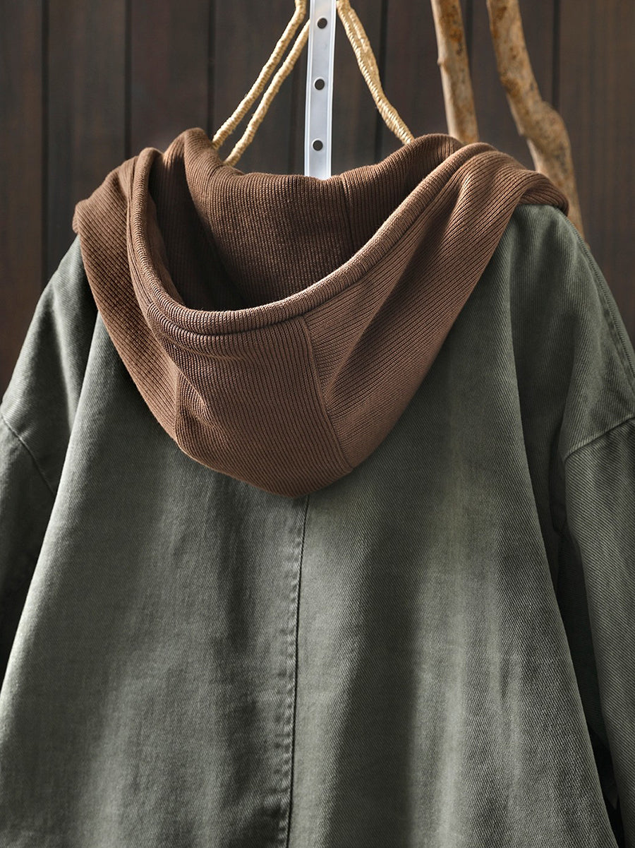 Giacca con cappuccio in cotone color block retrò primaverile da donna