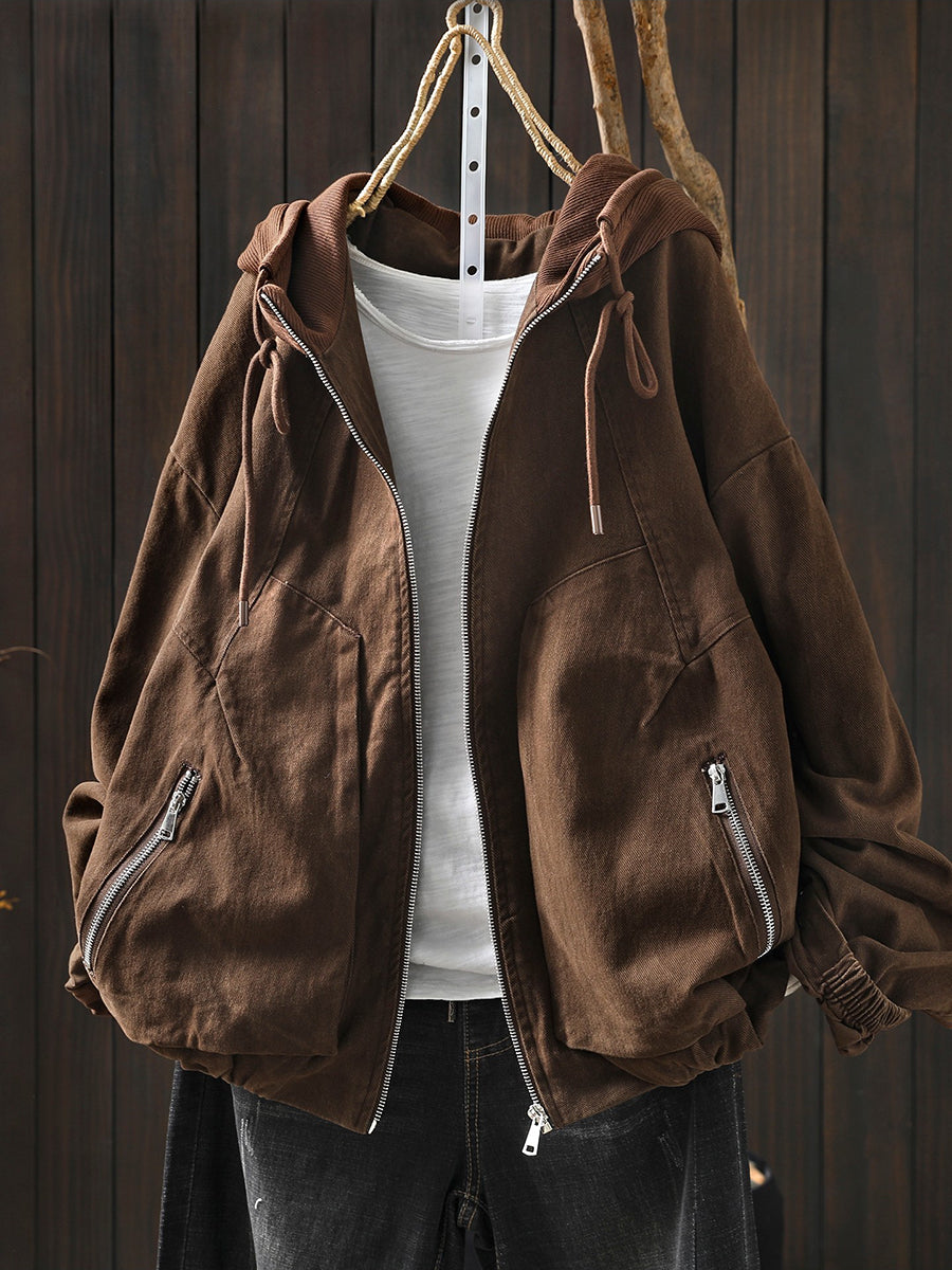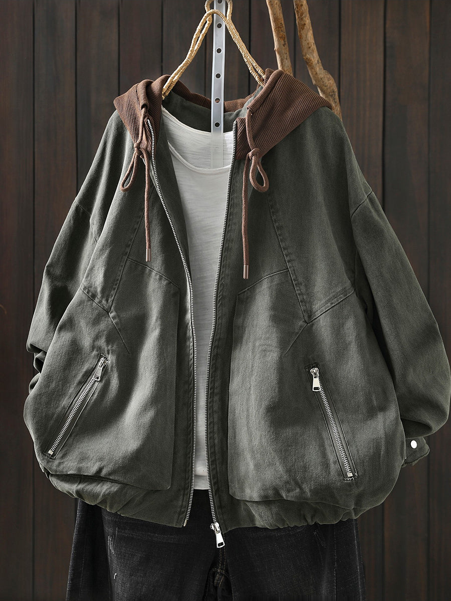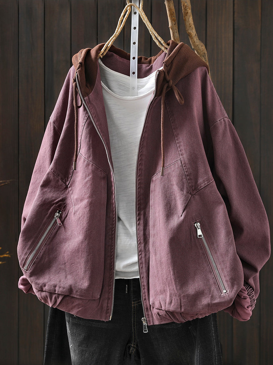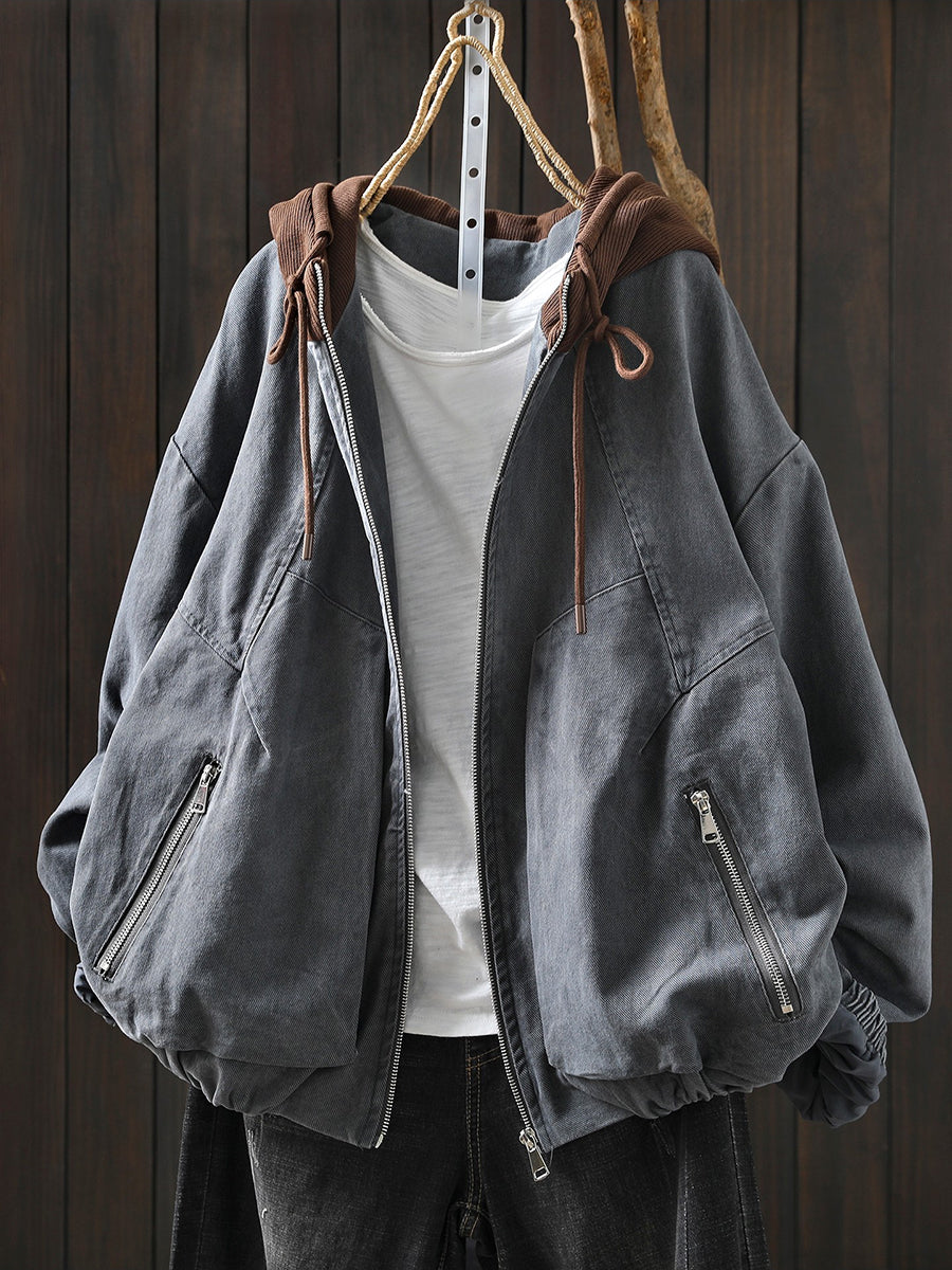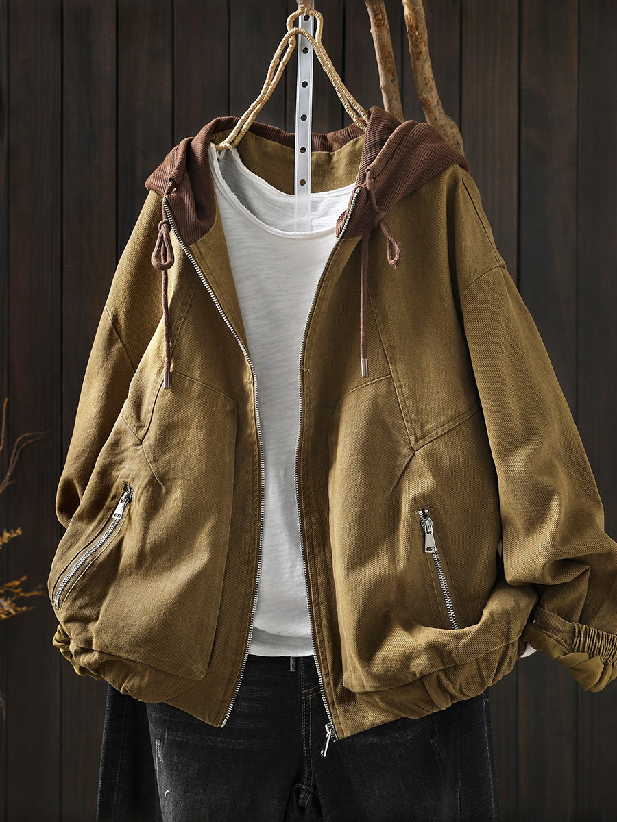 Giacca con cappuccio in cotone color block retrò primaverile da donna