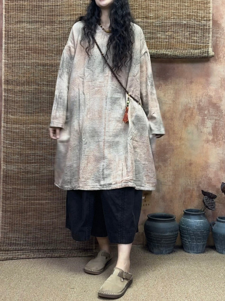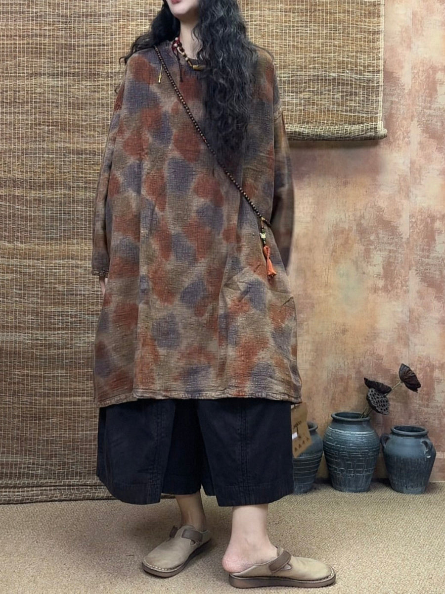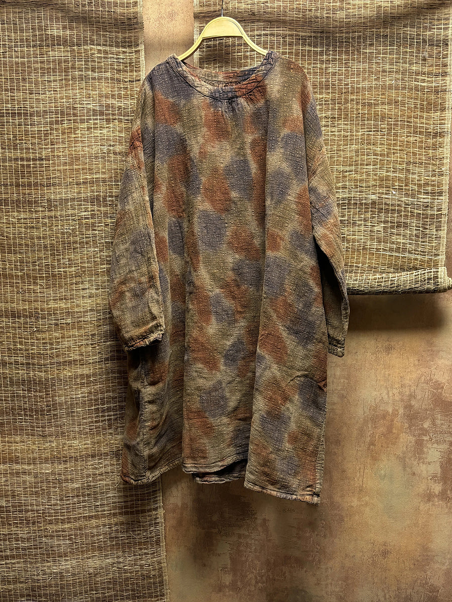 Blusa lunga da donna in lino 100% con effetto tie-dye vintage primaverile
