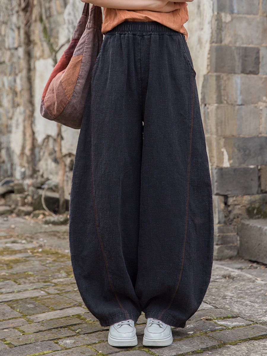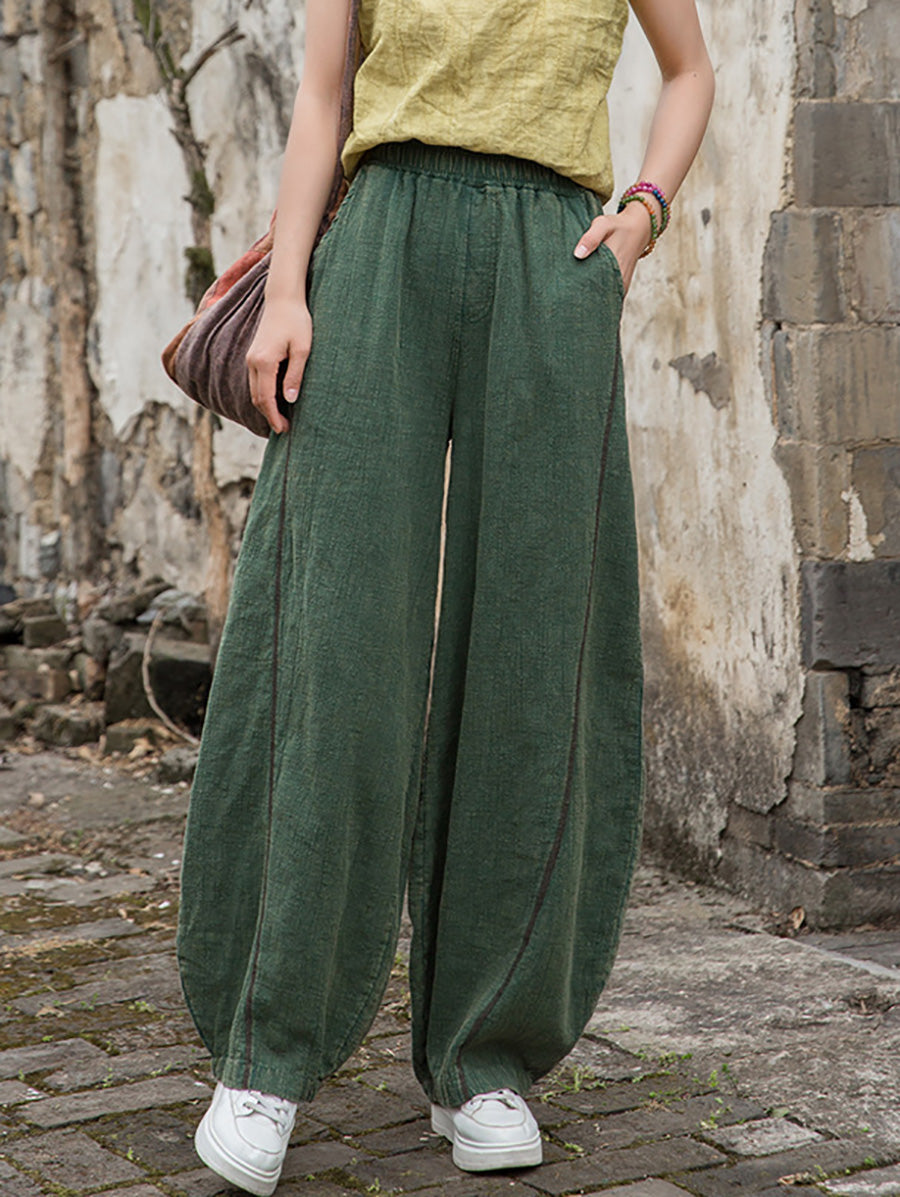 Pantaloni a pantaloncino in ramiè color puro, da donna, da indossare in estate