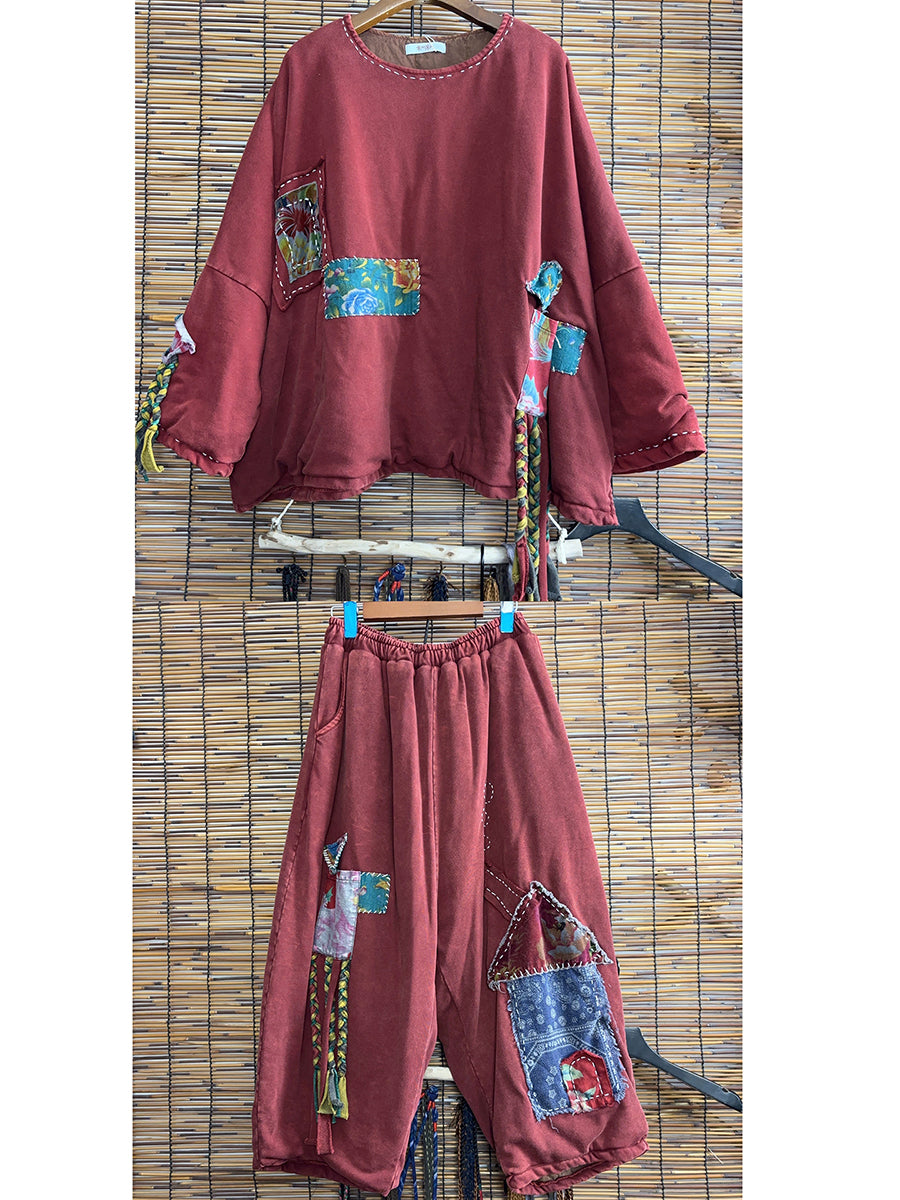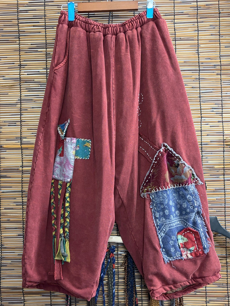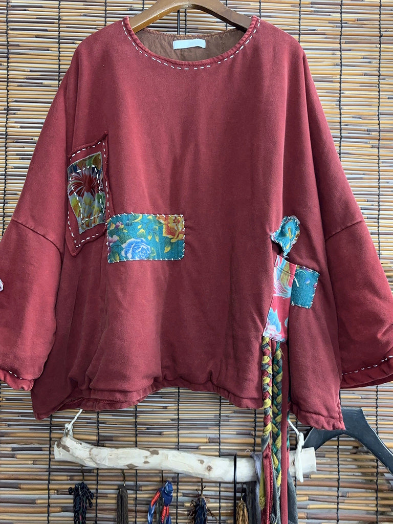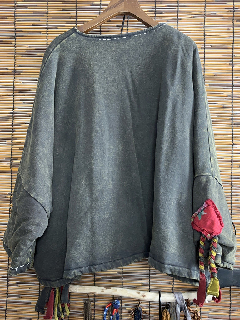 Tute invernali da donna con scollo a V e nappe in stile retrò patchwork