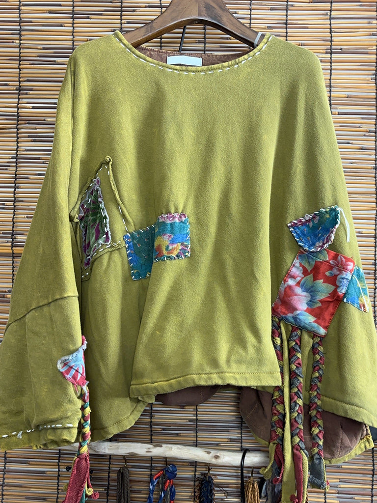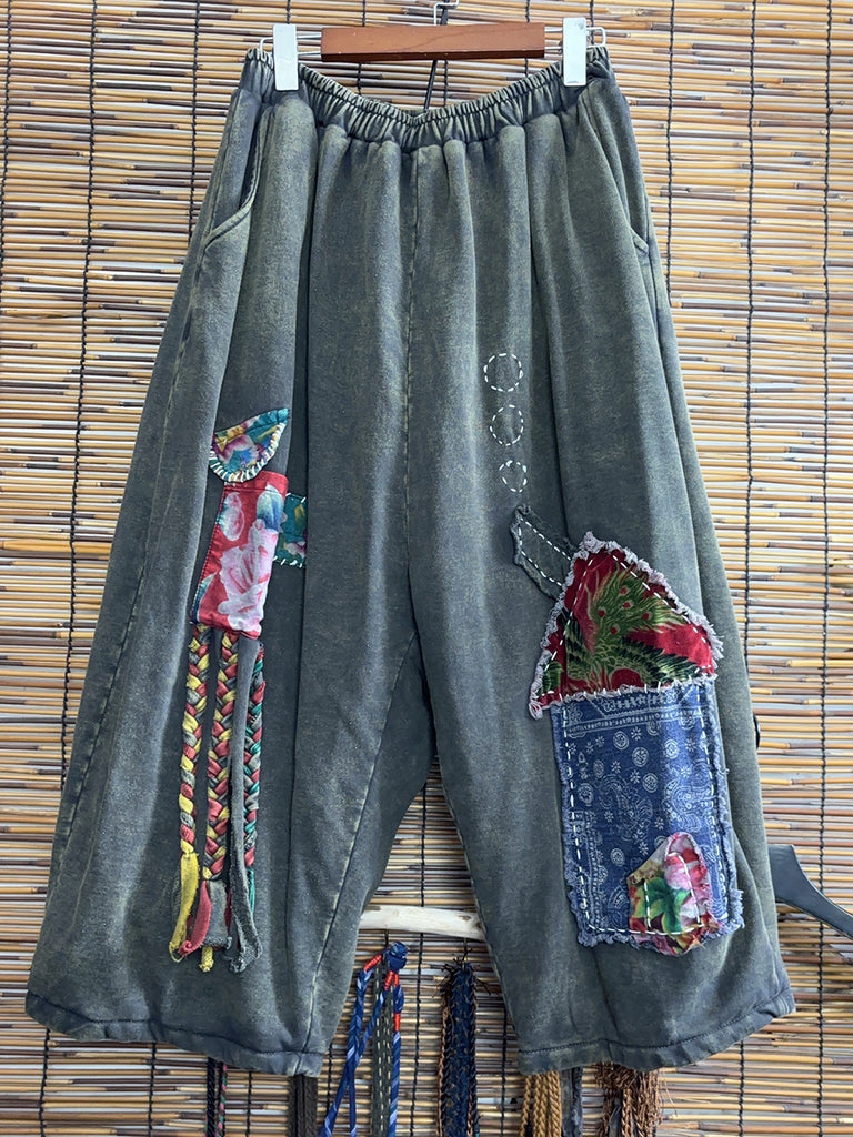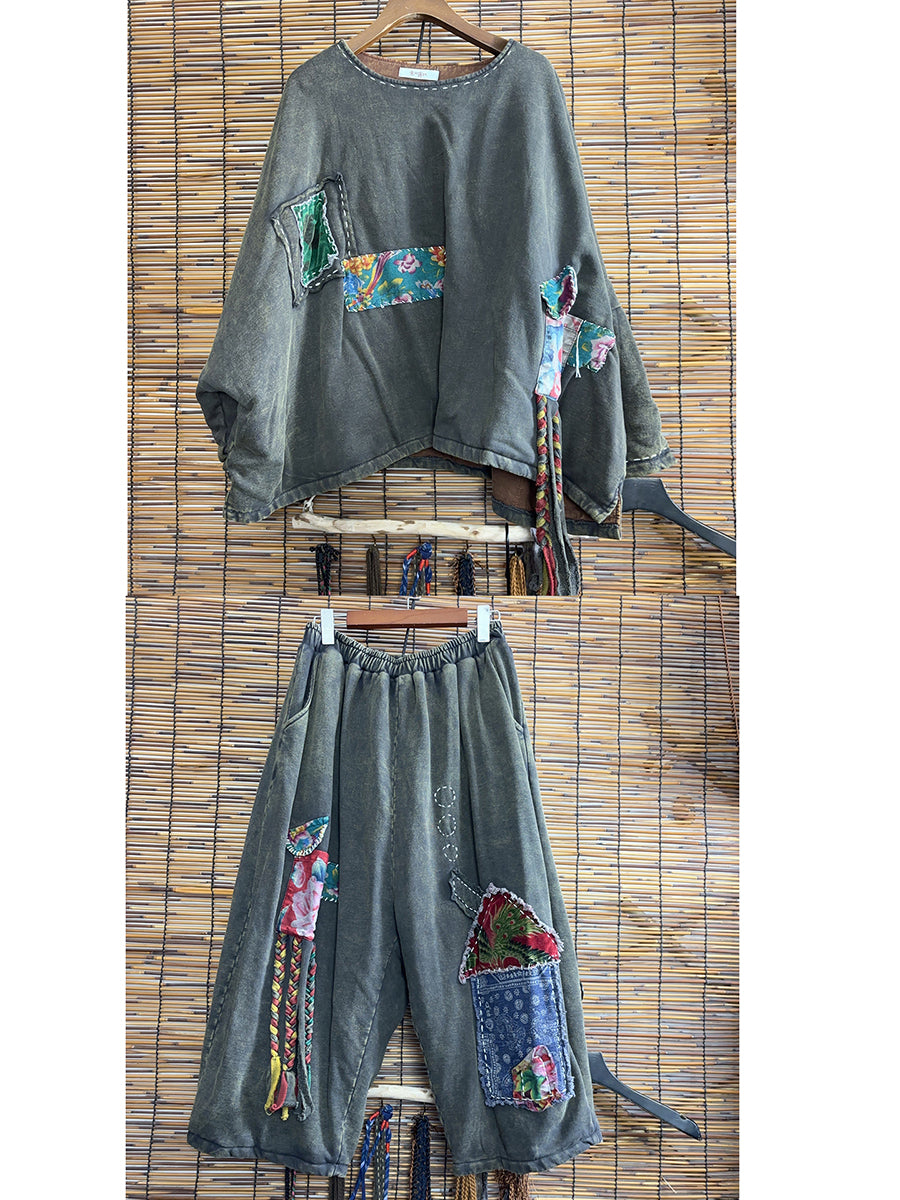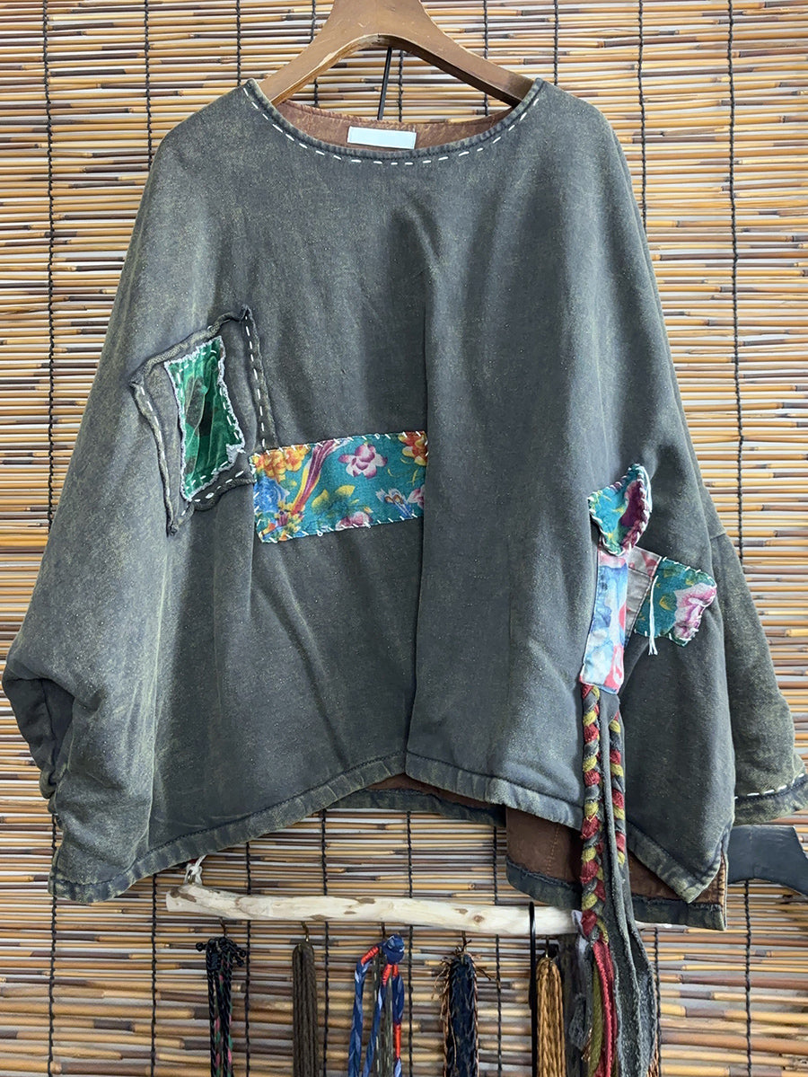Tute invernali da donna con scollo a V e nappe in stile retrò patchwork