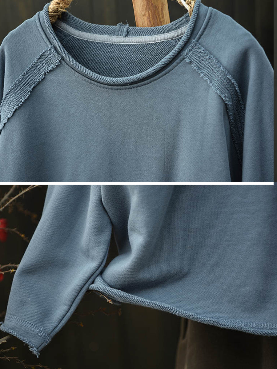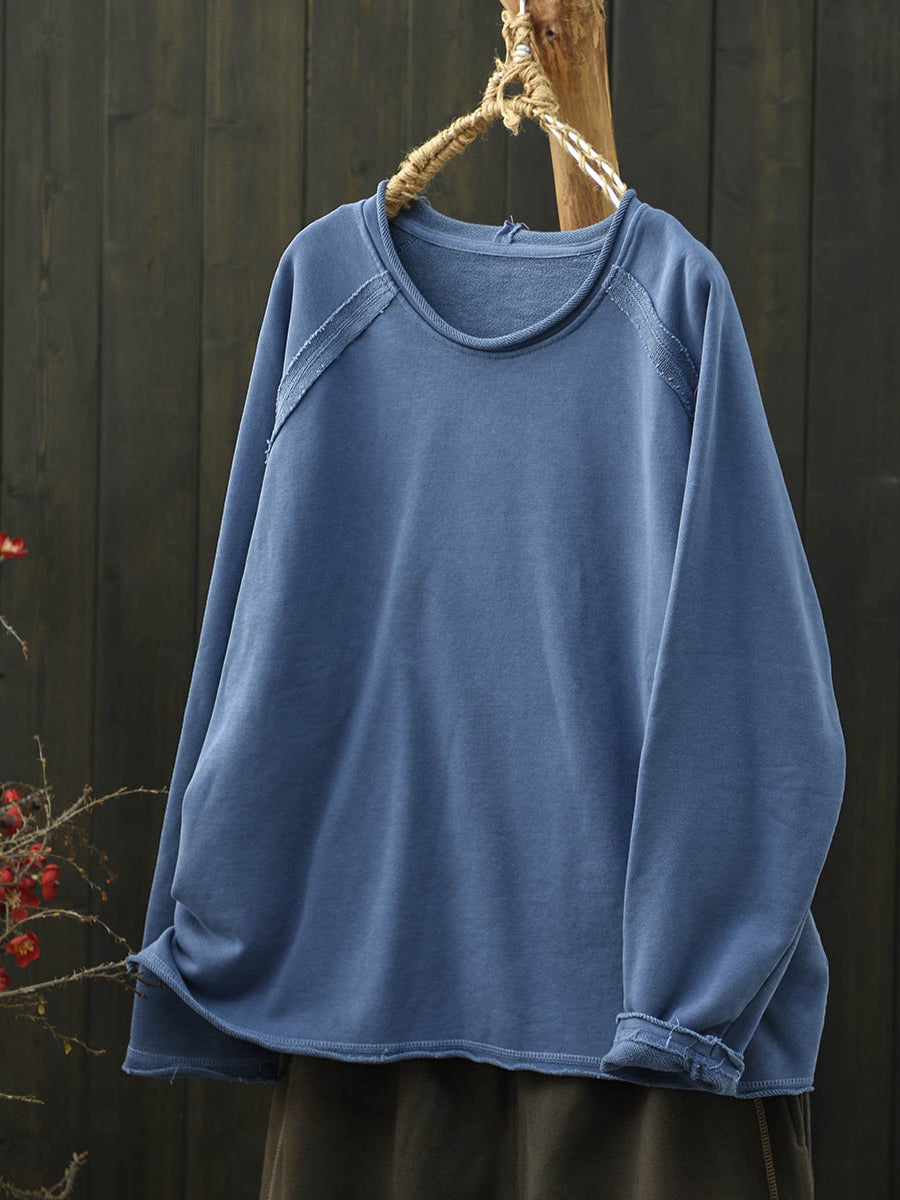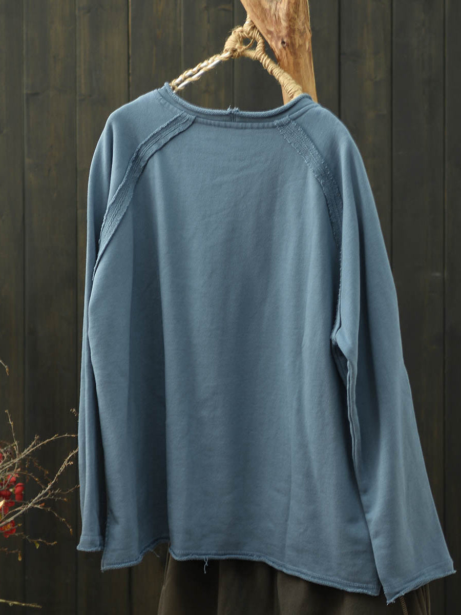 Camicetta da donna in cotone con scollo a V, colore puro, stile artistico autunnale