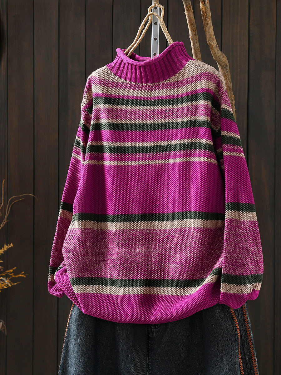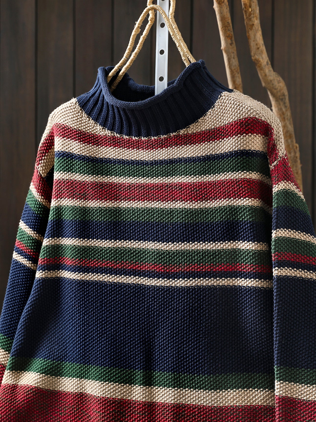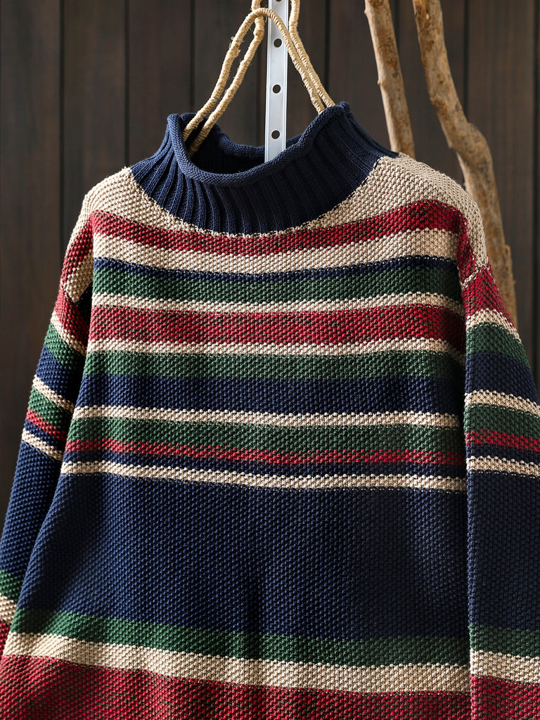 Realizzato in un pregiato mix di 55% acrilico e 45% cotone, questo maglione a collo alto offre calore e traspirabilità durante i mesi più freddi. L'artistico motivo a righe colorblock aggiunge un tocco di originalità al tuo guardaroba stagionale, mentre le maniche lunghe e regolari offrono una copertura classica. Pensato per l'autunno e l'inverno, questo capo coniuga comfort e stile contemporaneo.