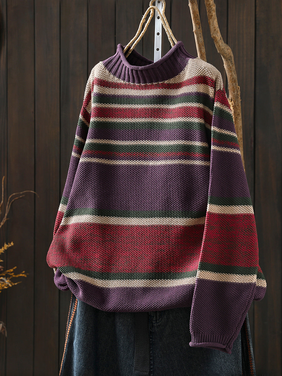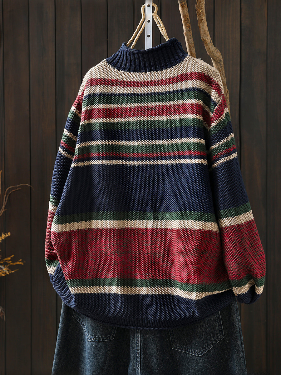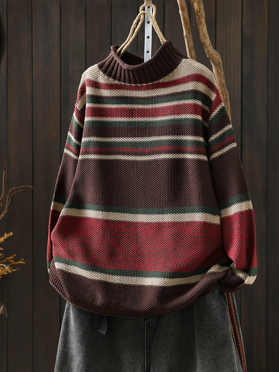 Realizzato in un pregiato mix di 55% acrilico e 45% cotone, questo maglione a collo alto offre calore e traspirabilità durante i mesi più freddi. L'artistico motivo a righe colorblock aggiunge un tocco di originalità al tuo guardaroba stagionale, mentre le maniche lunghe e regolari offrono una copertura classica. Pensato per l'autunno e l'inverno, questo capo coniuga comfort e stile contemporaneo.