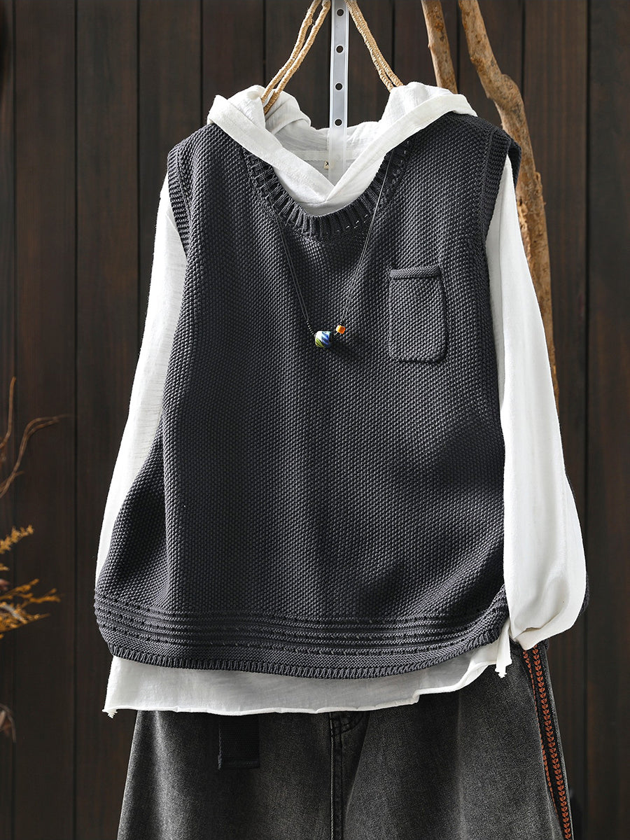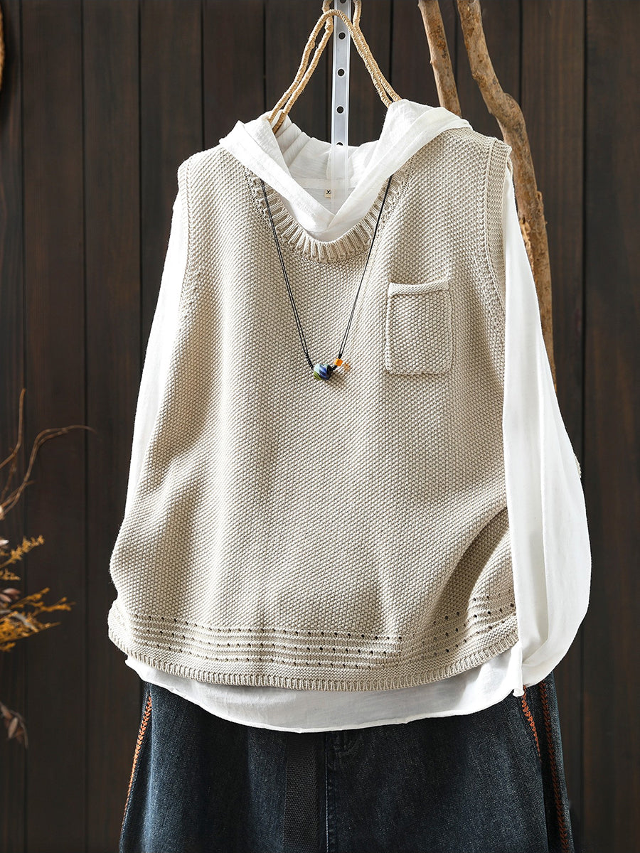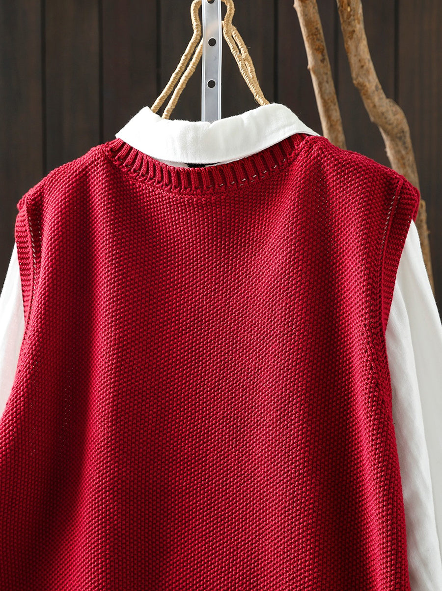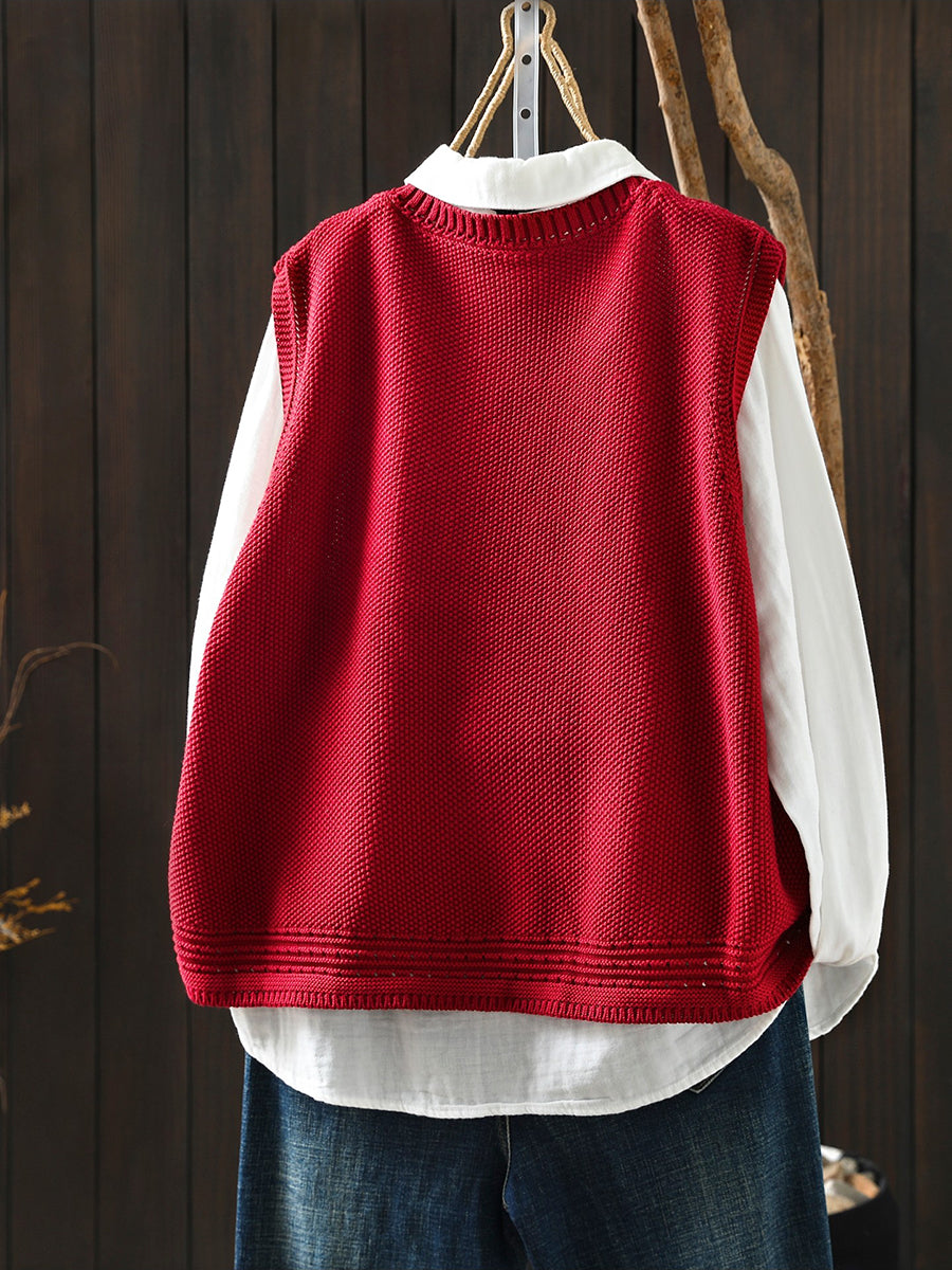 Gilet lavorato a maglia color puro con scollo a V e motivo artistico da donna primaverile