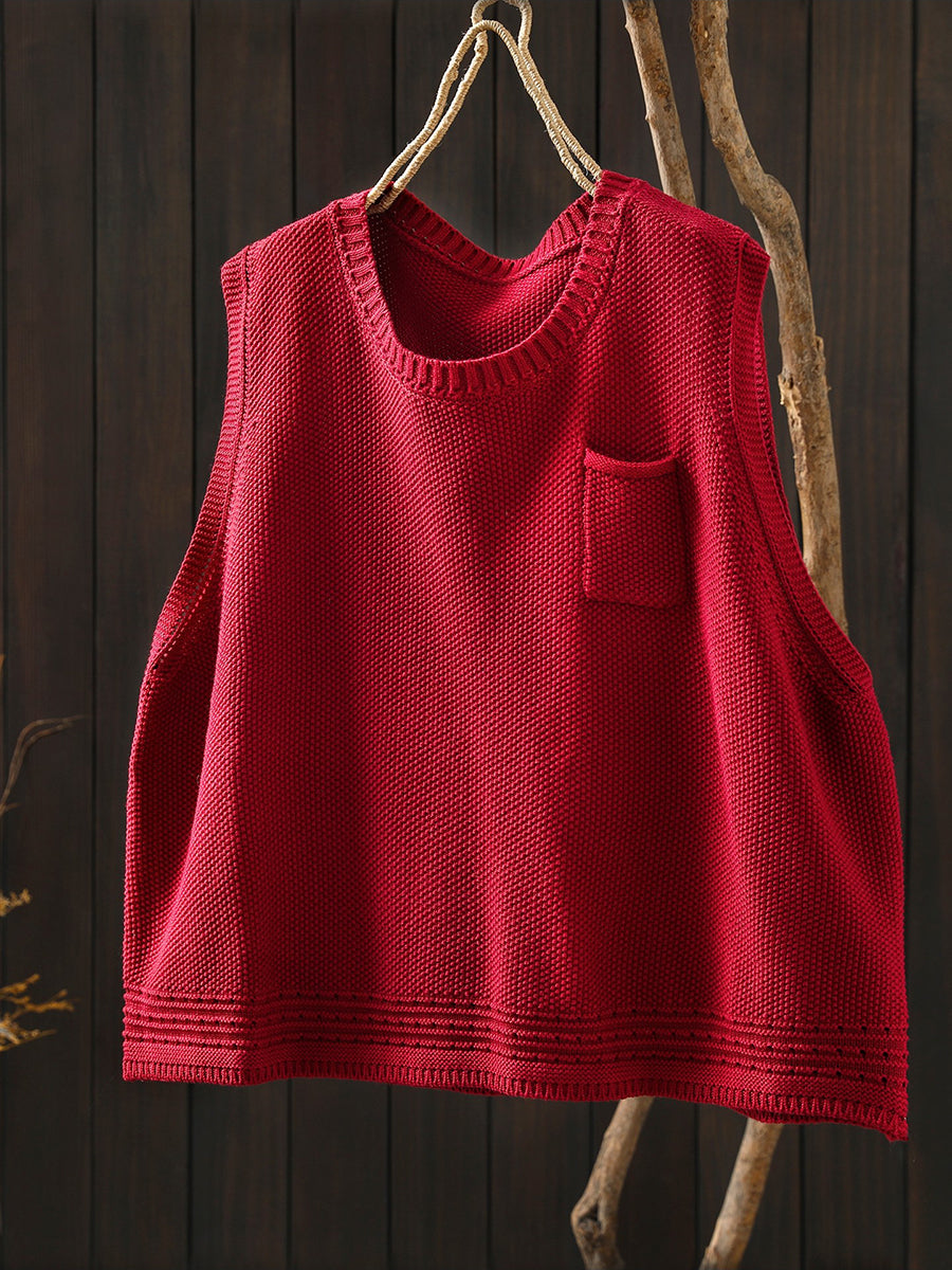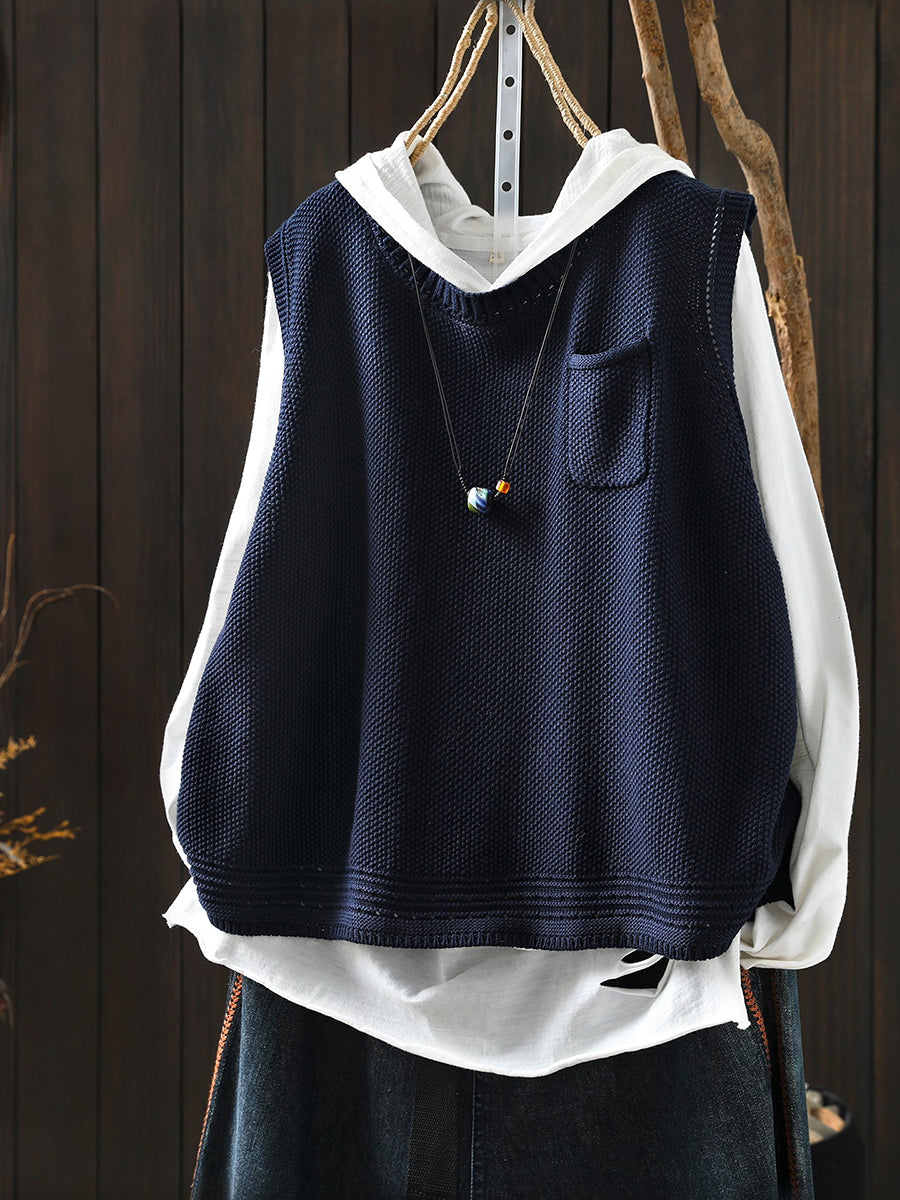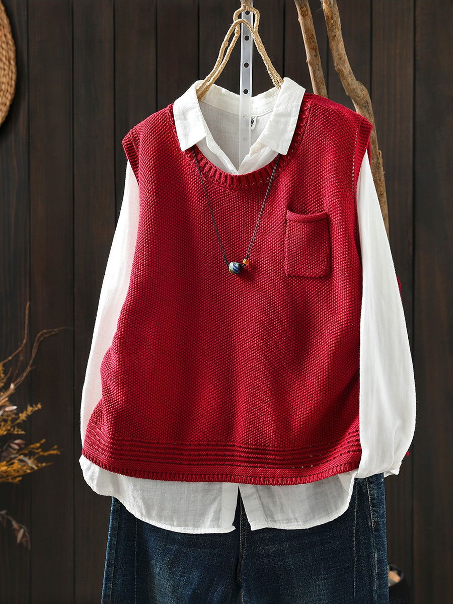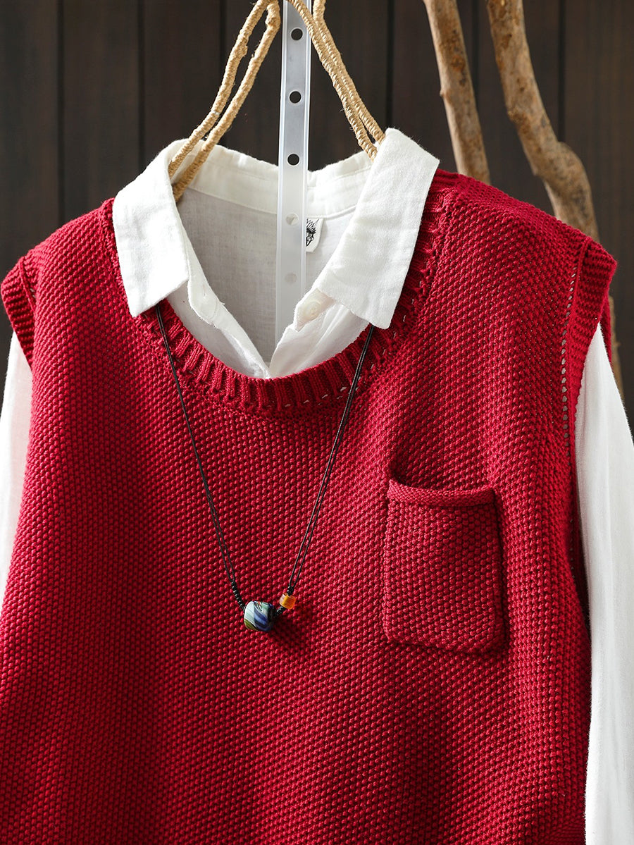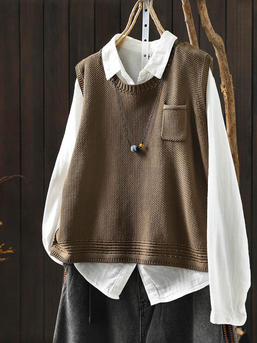 Gilet lavorato a maglia color puro con scollo a V e motivo artistico da donna primaverile