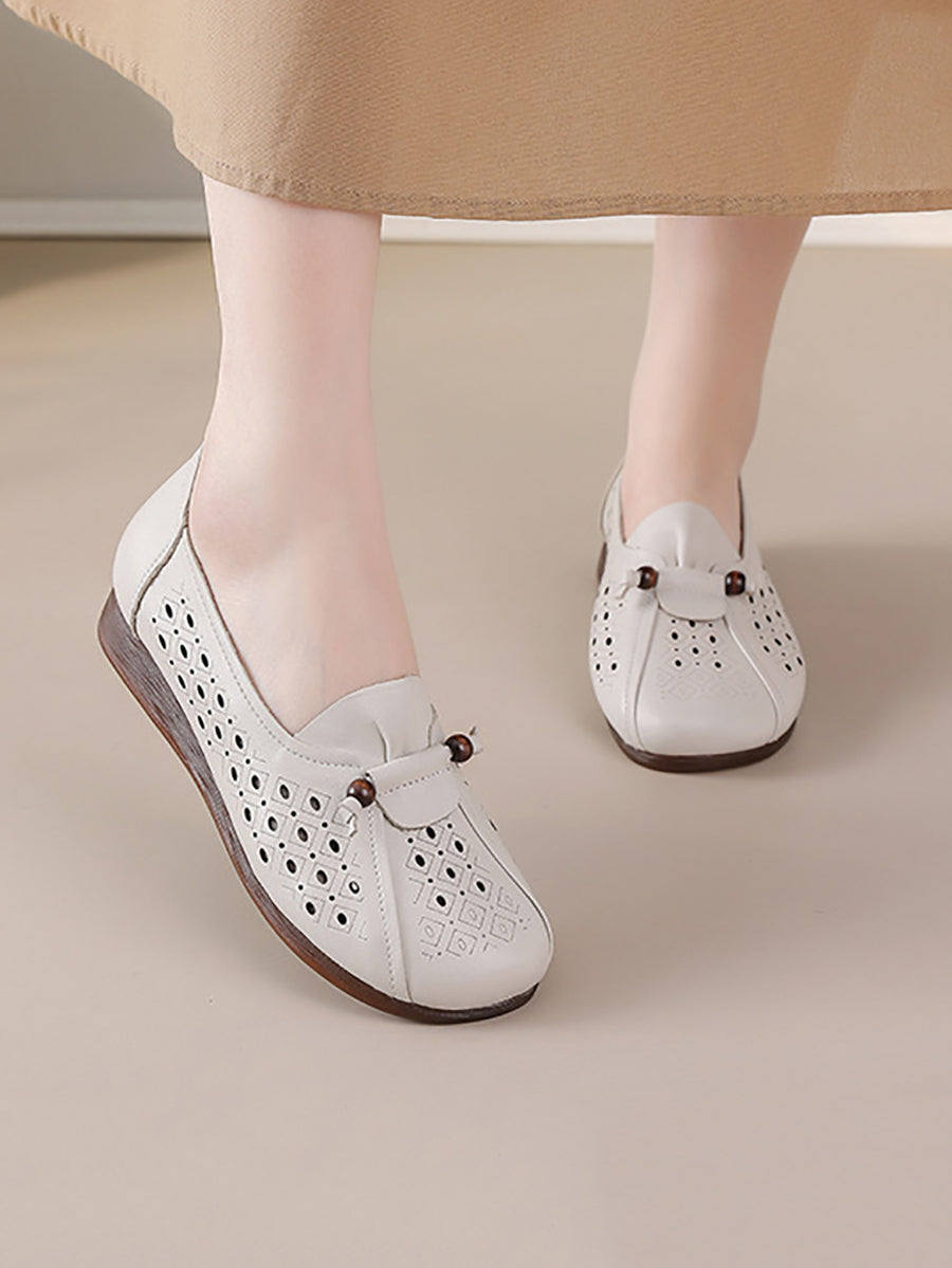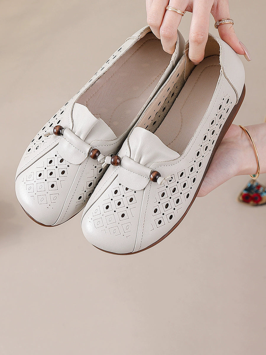 Scarpe estive da donna in vera pelle traforata