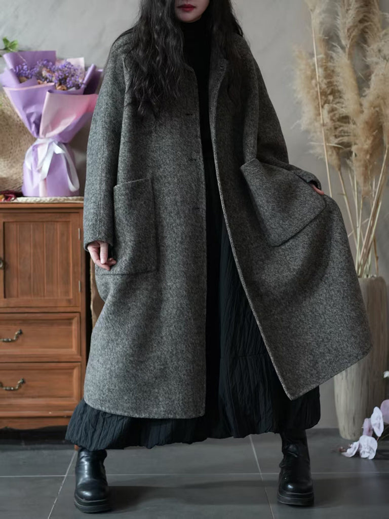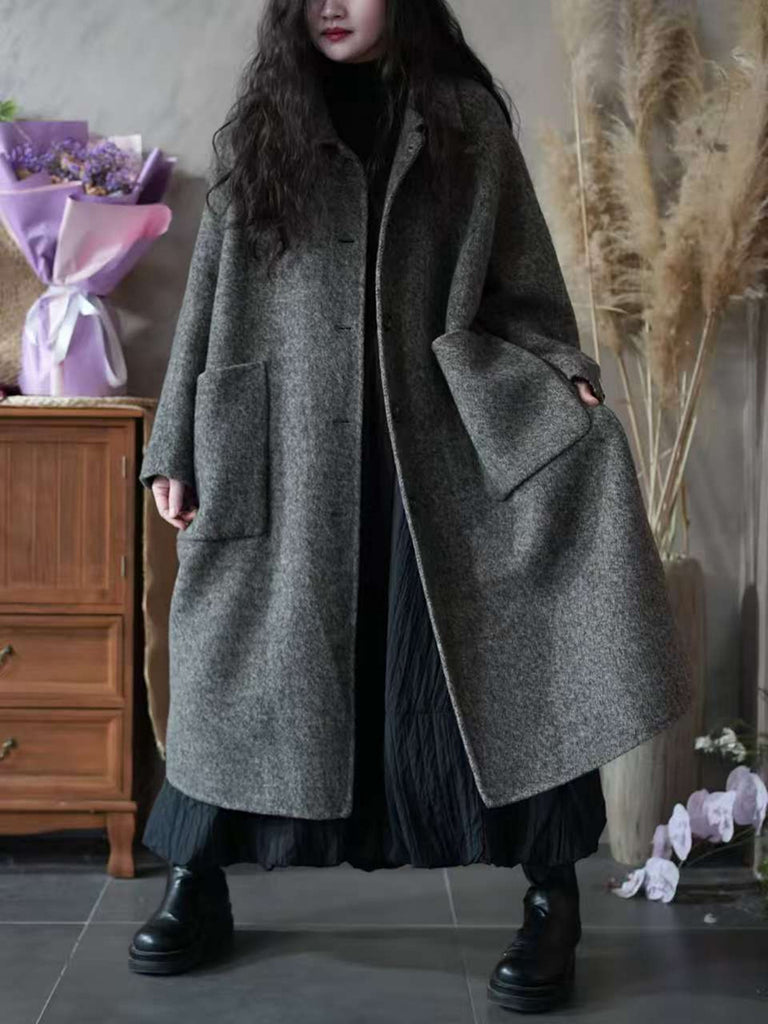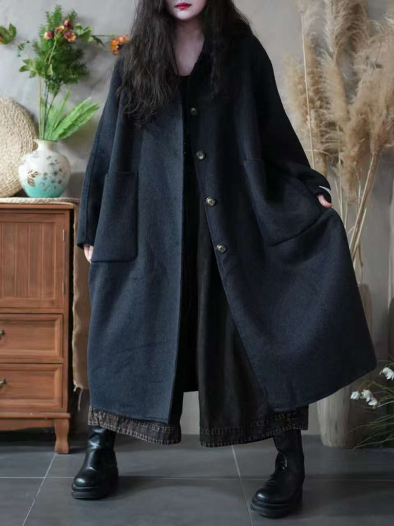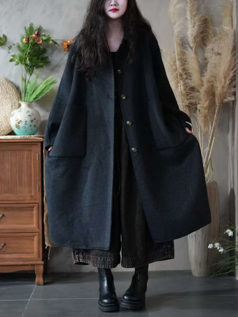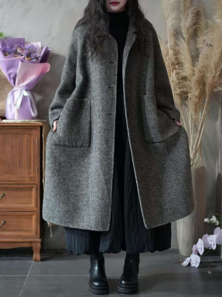 Cappotto invernale da donna in pile con colletto rovesciato, colore puro