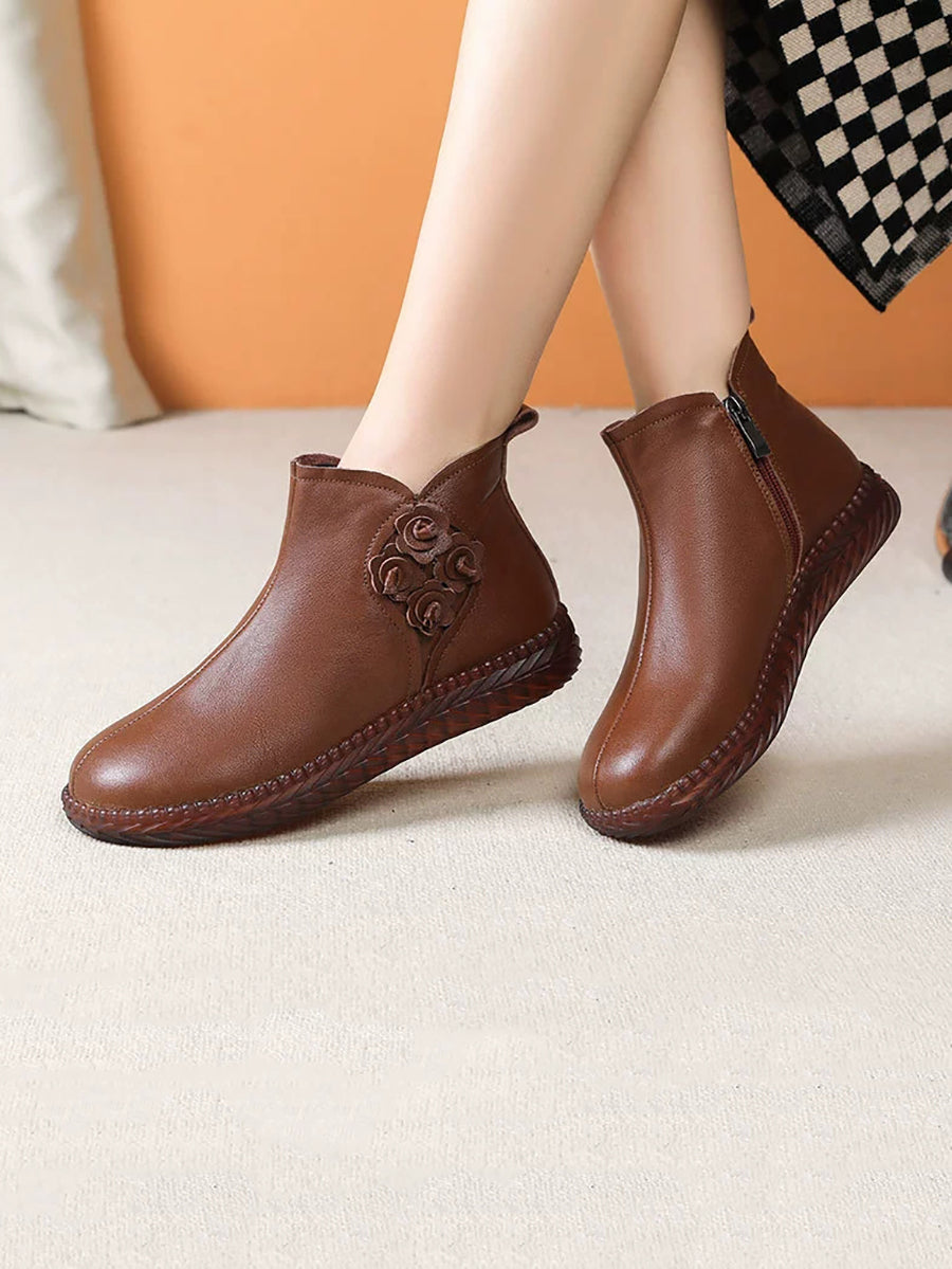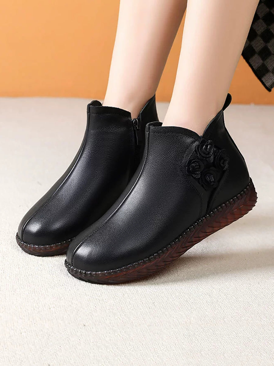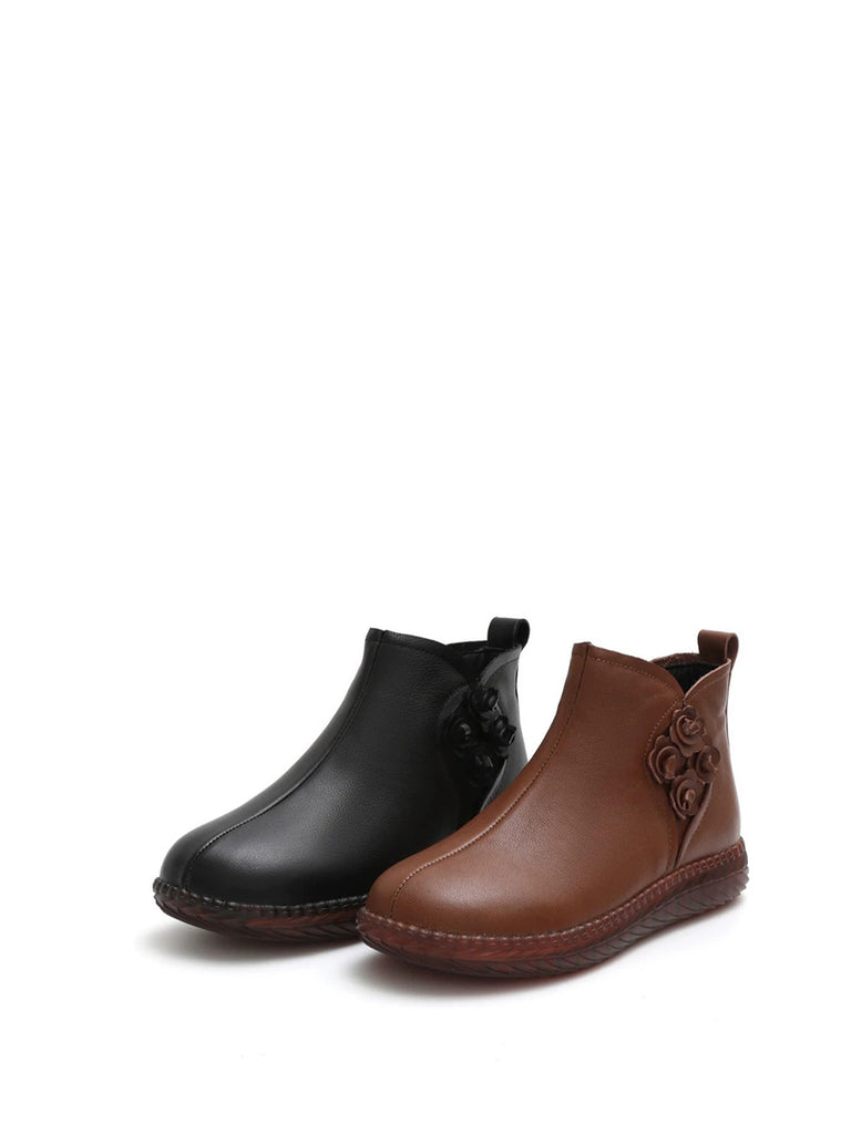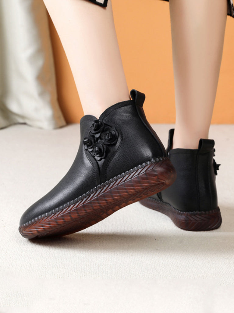 Stivali invernali da donna in pelle vintage con fodera in pile e fiori